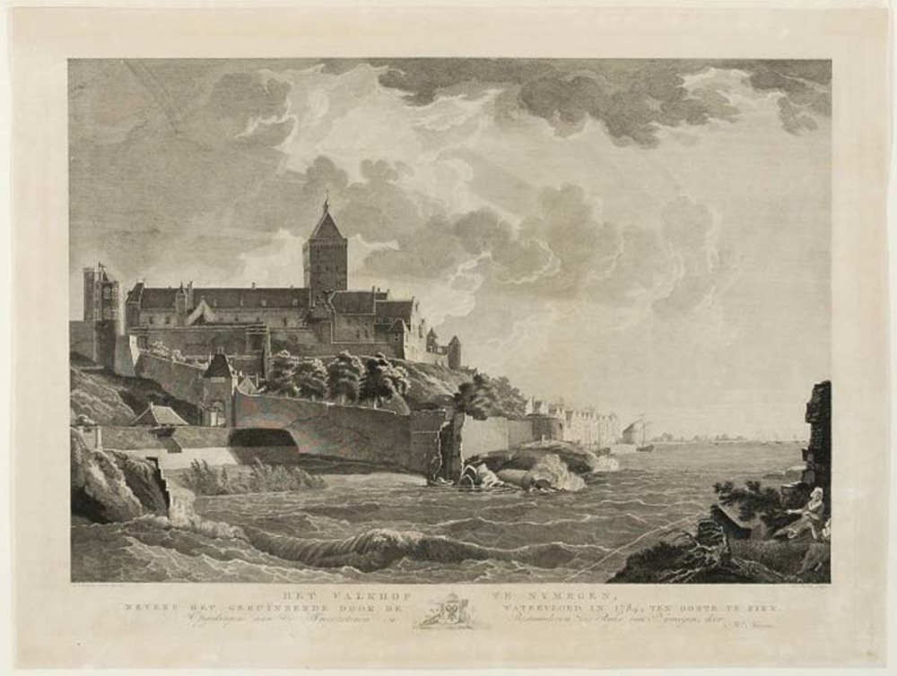 Gezicht op het Valkhof en de ingestorte Lappentoren ...
