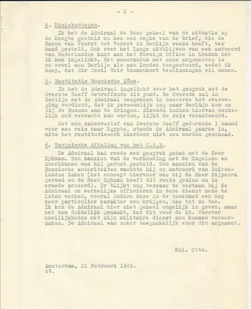 afschrift van de bespreking met de Vice-Admiraal de ...