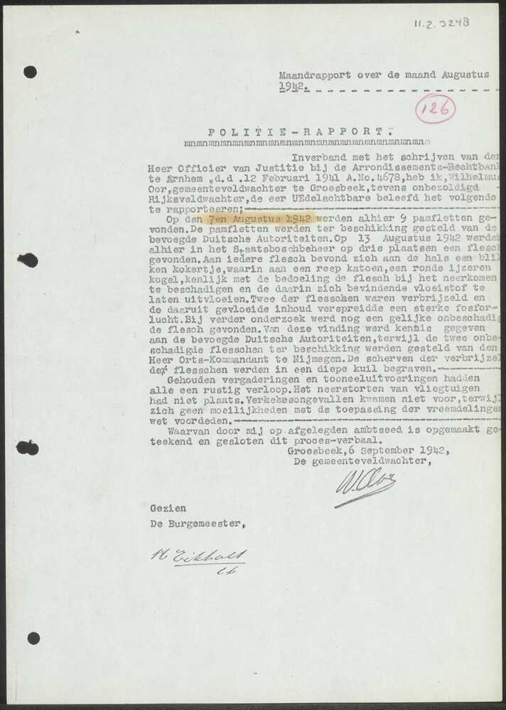 Politie-rapport Gemeente Groesbeek van 6 september 1...