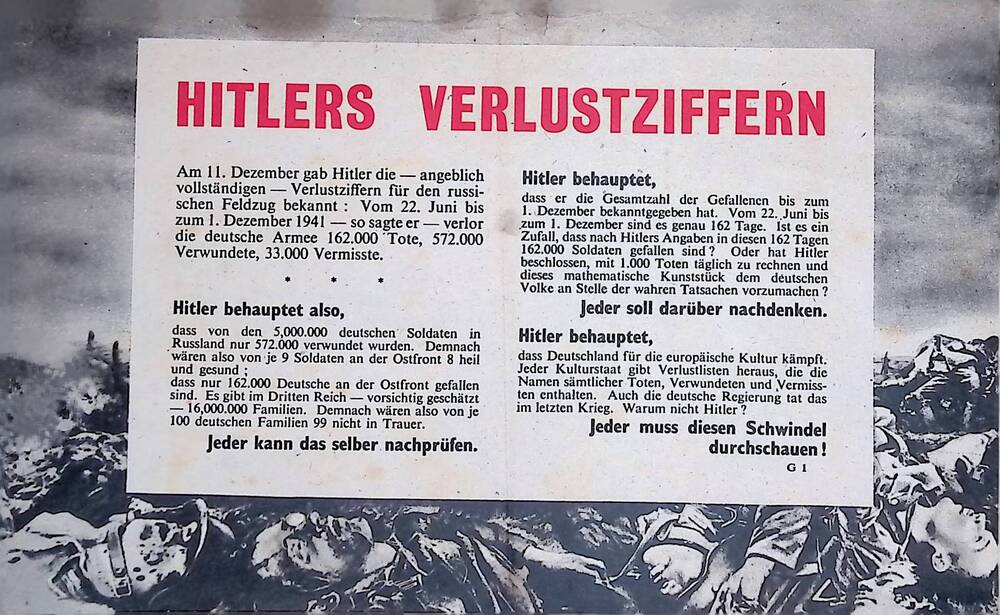 Pamflet: "Der Rückzug von Moskau/Hitlers Verulstziff...