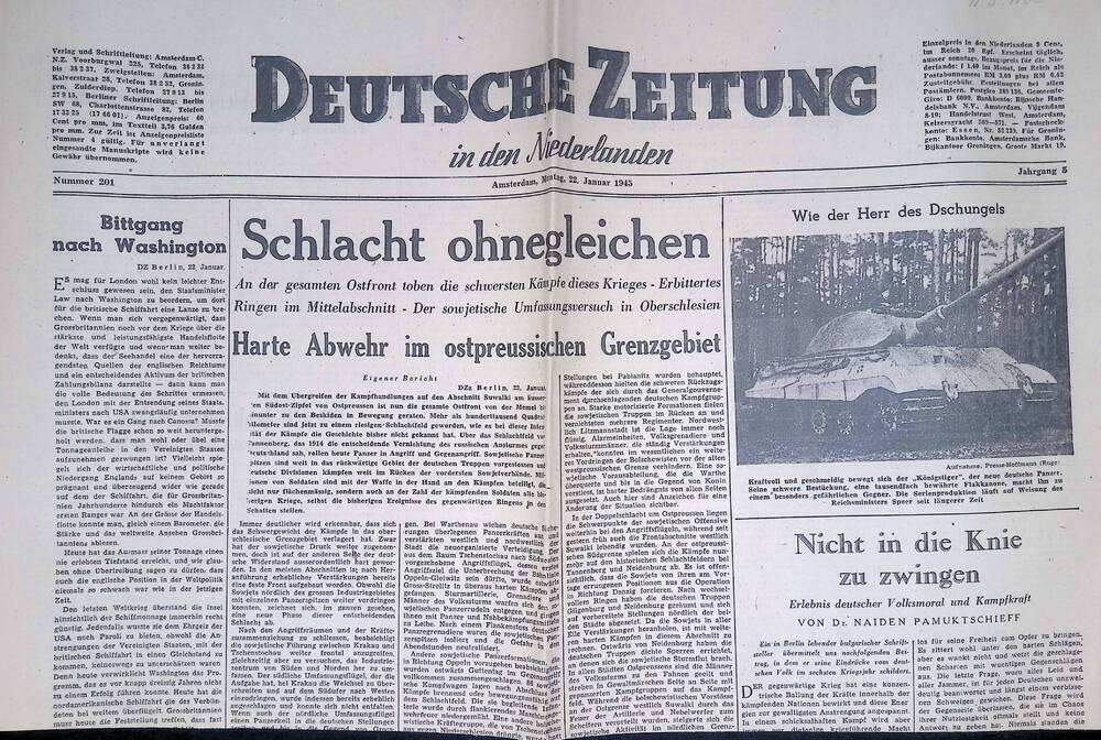 Deutsche Zeitung in den Niederlanden. 22 januari 1945.