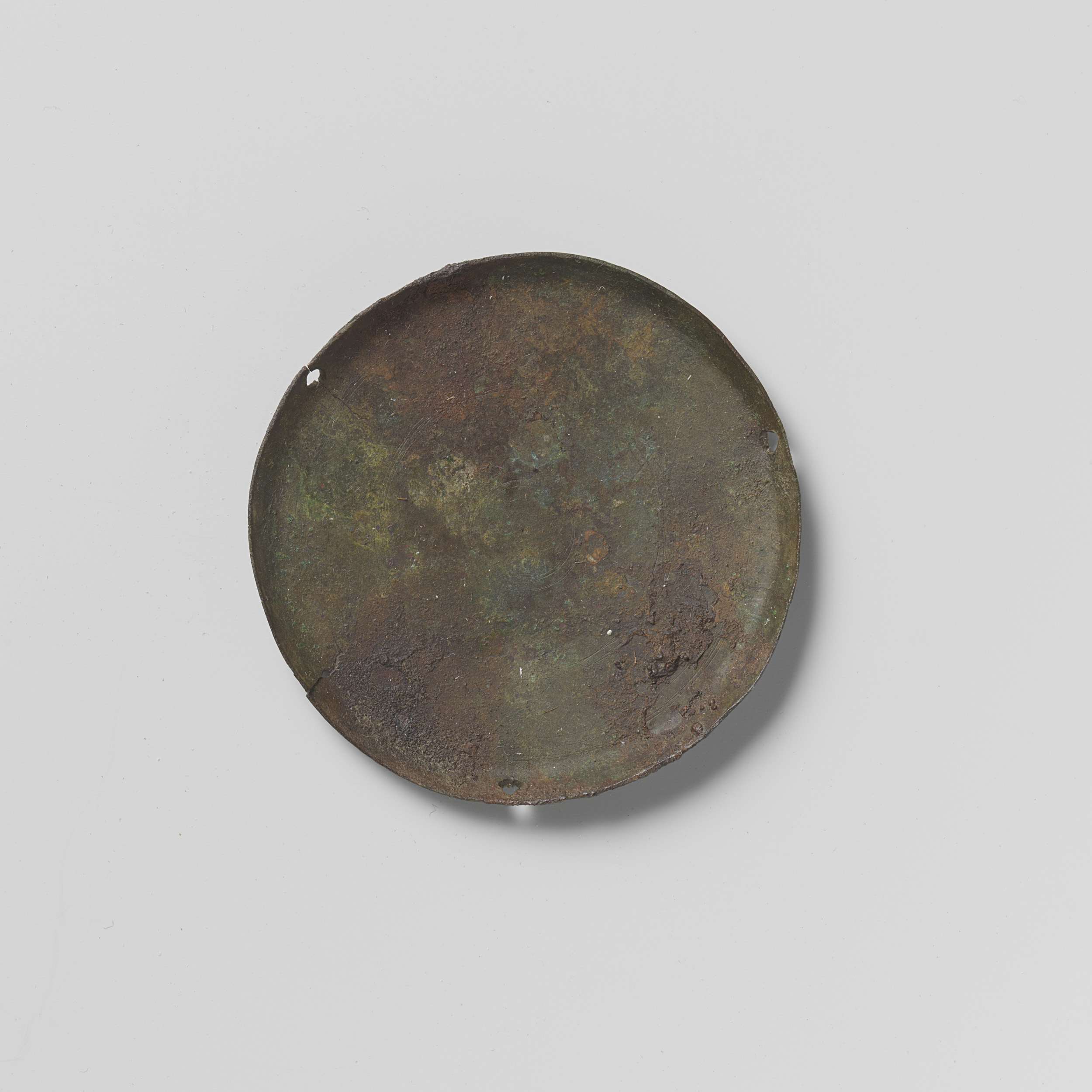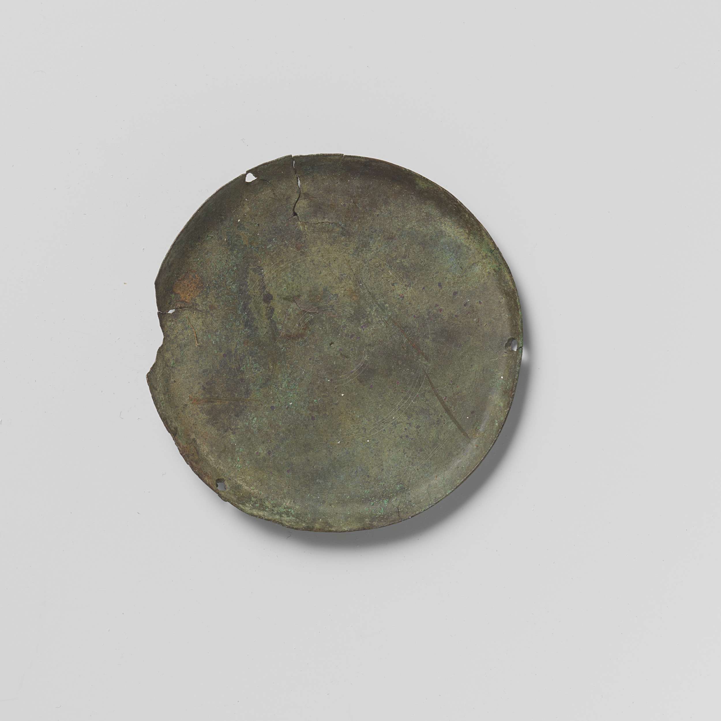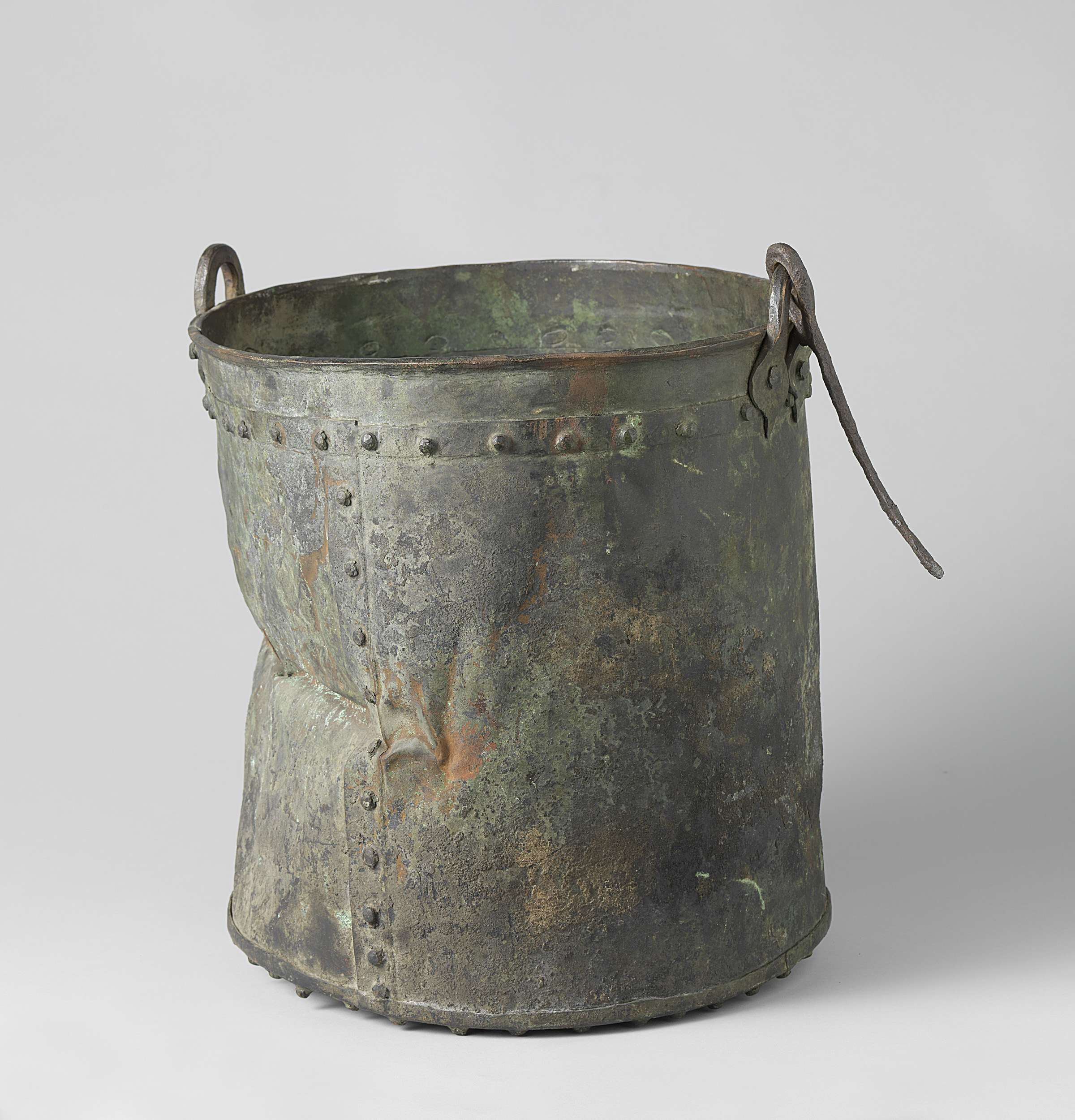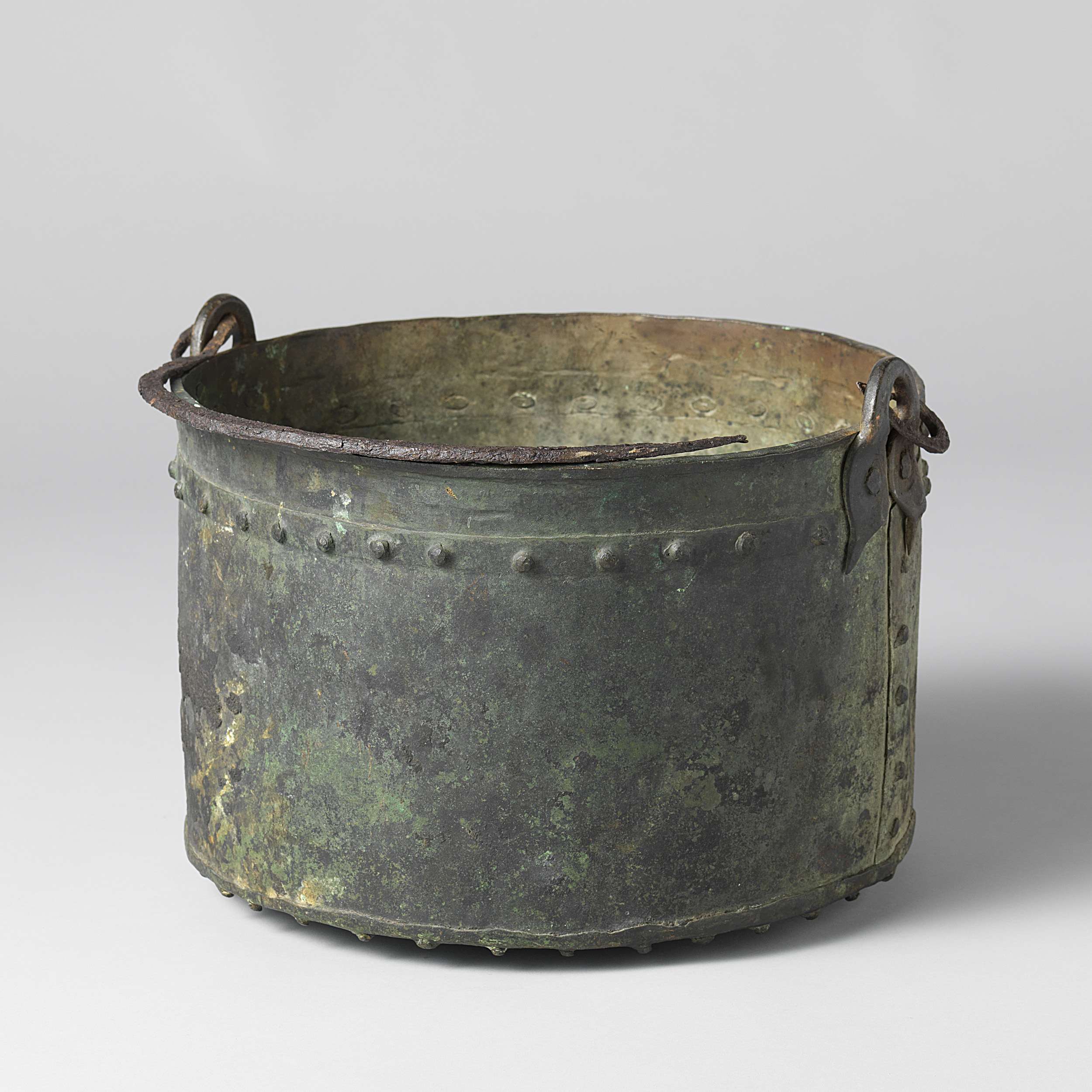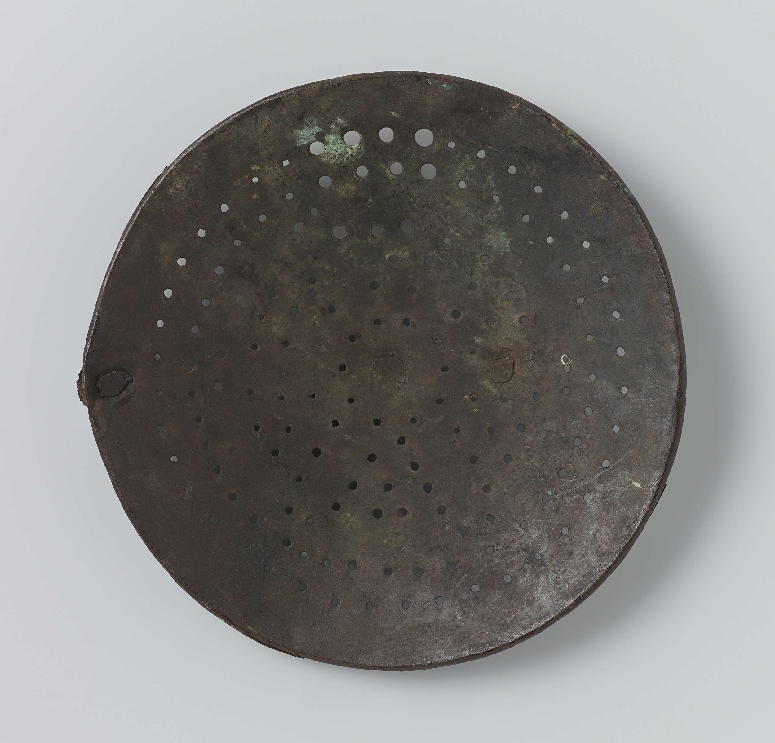Zeef van een koperen schuimspaan met gaatjes in de v...