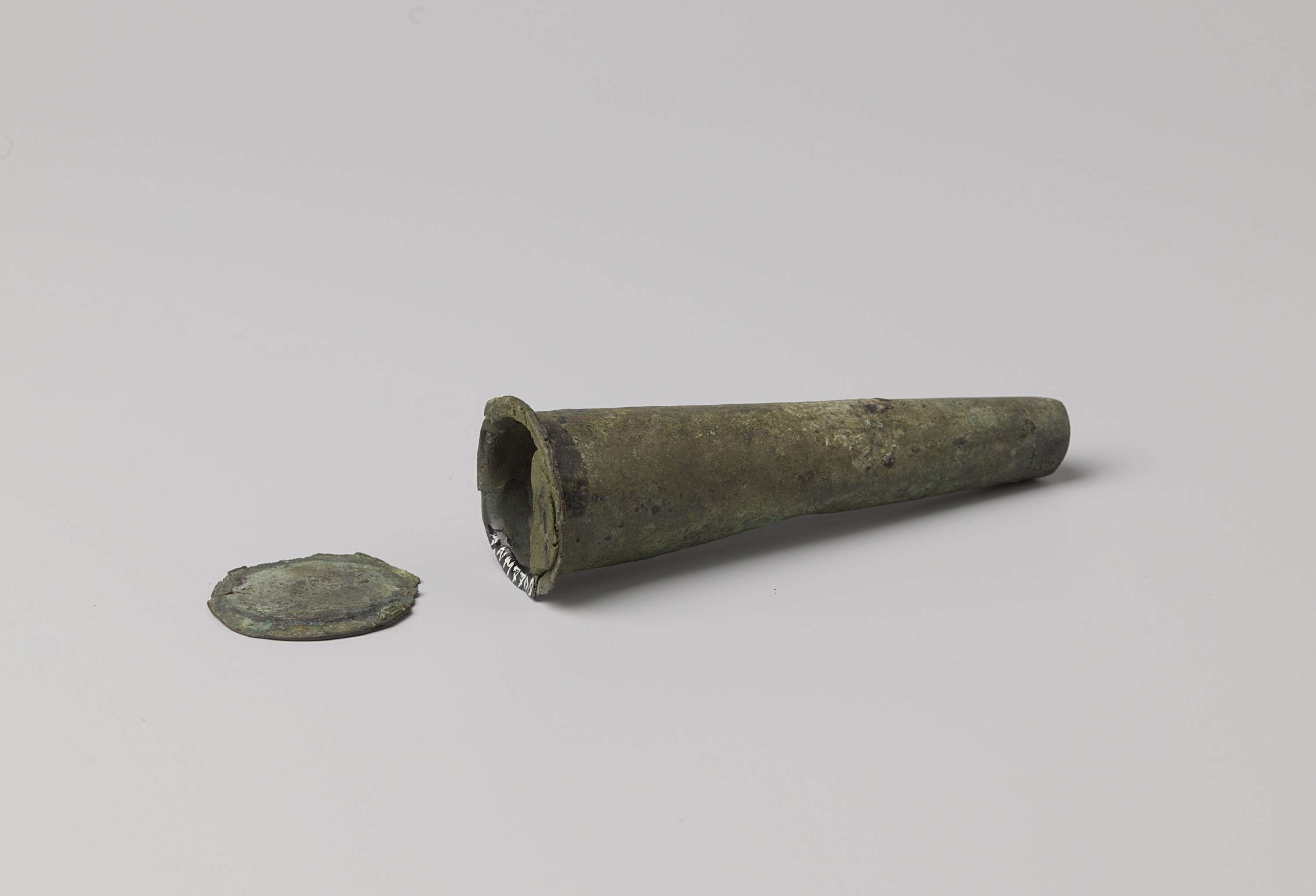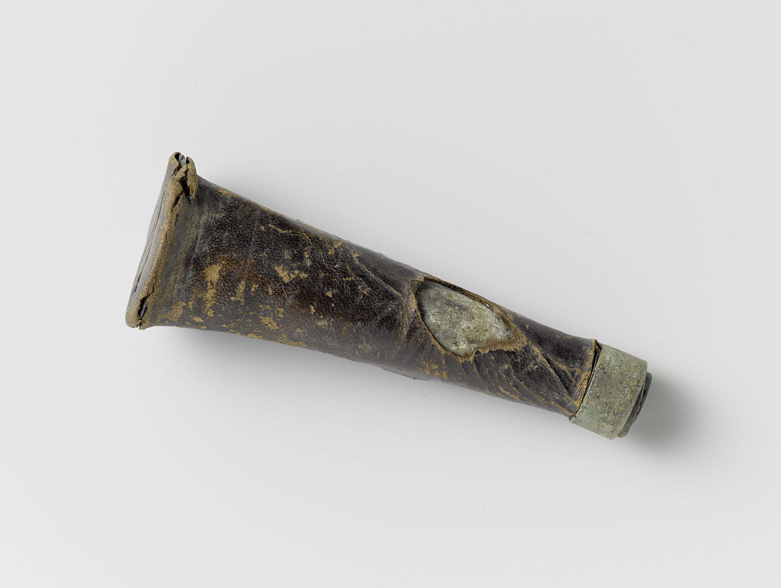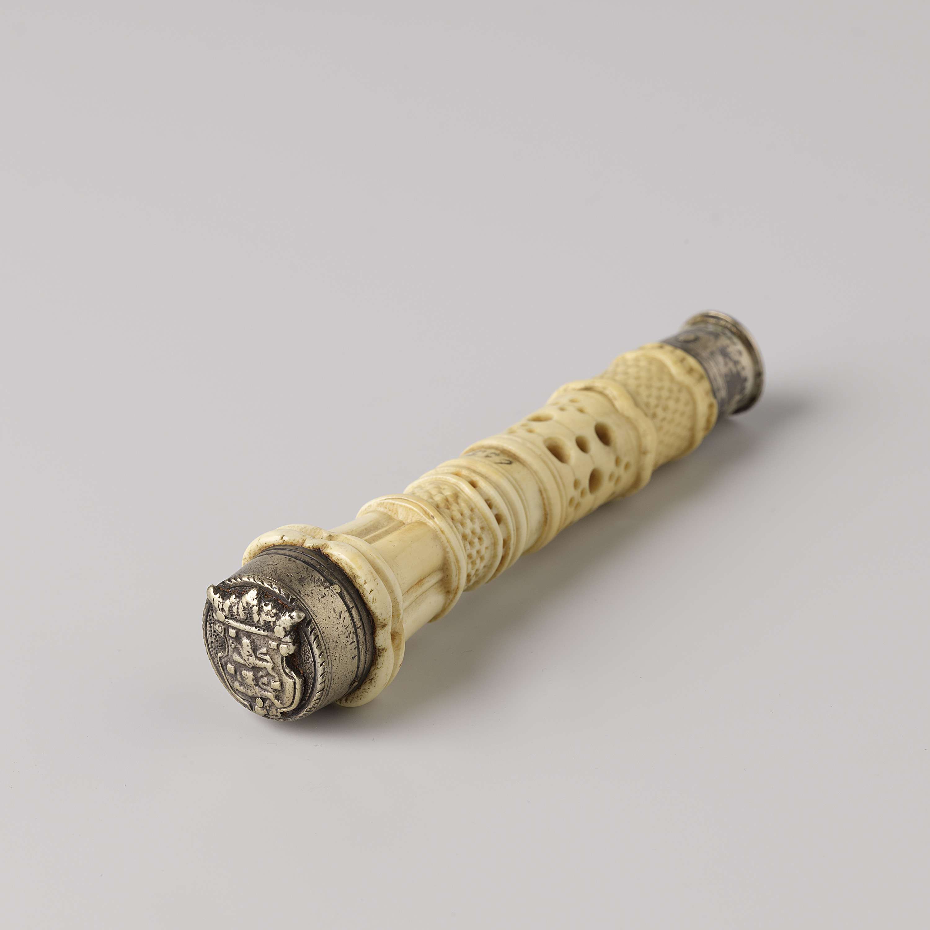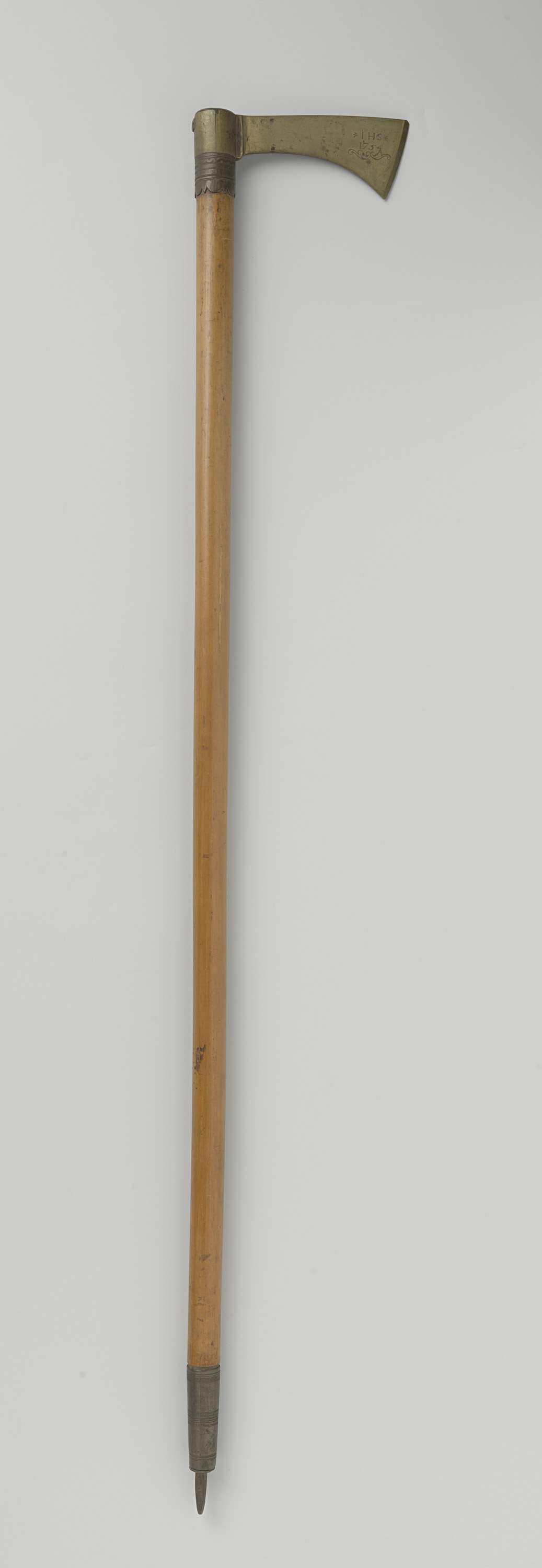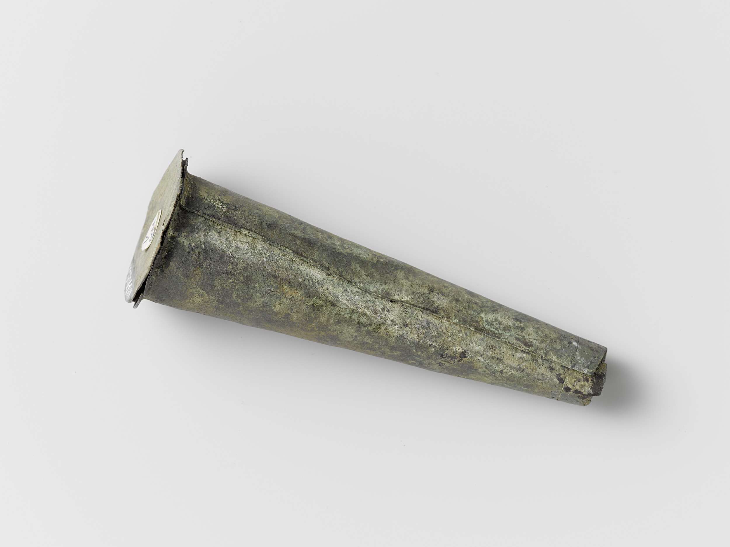Ronde houten stok waarop een puntig toelopende dubbe...