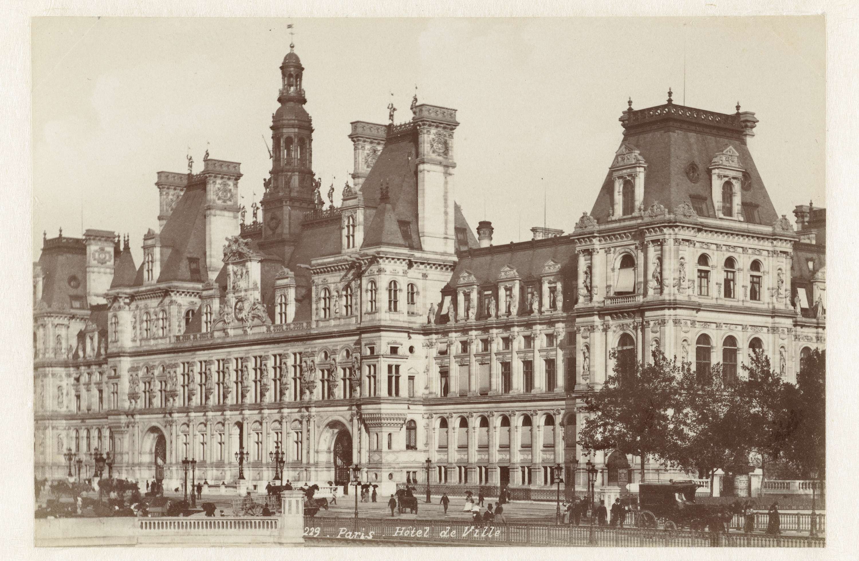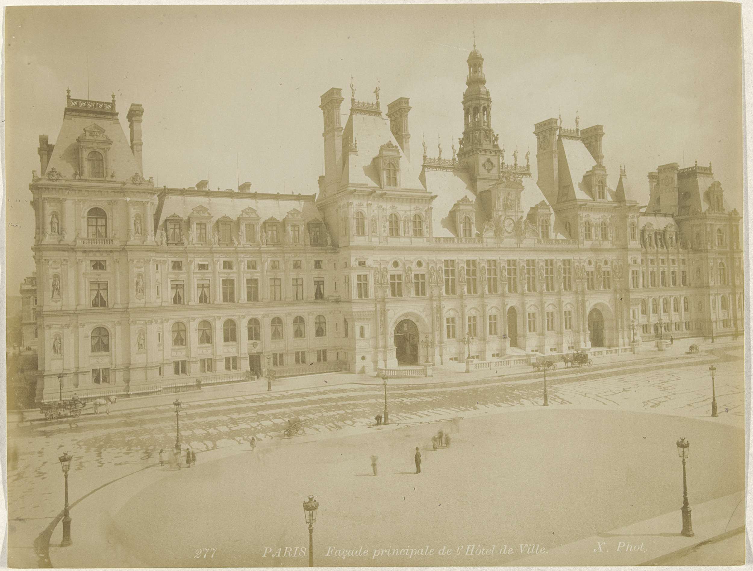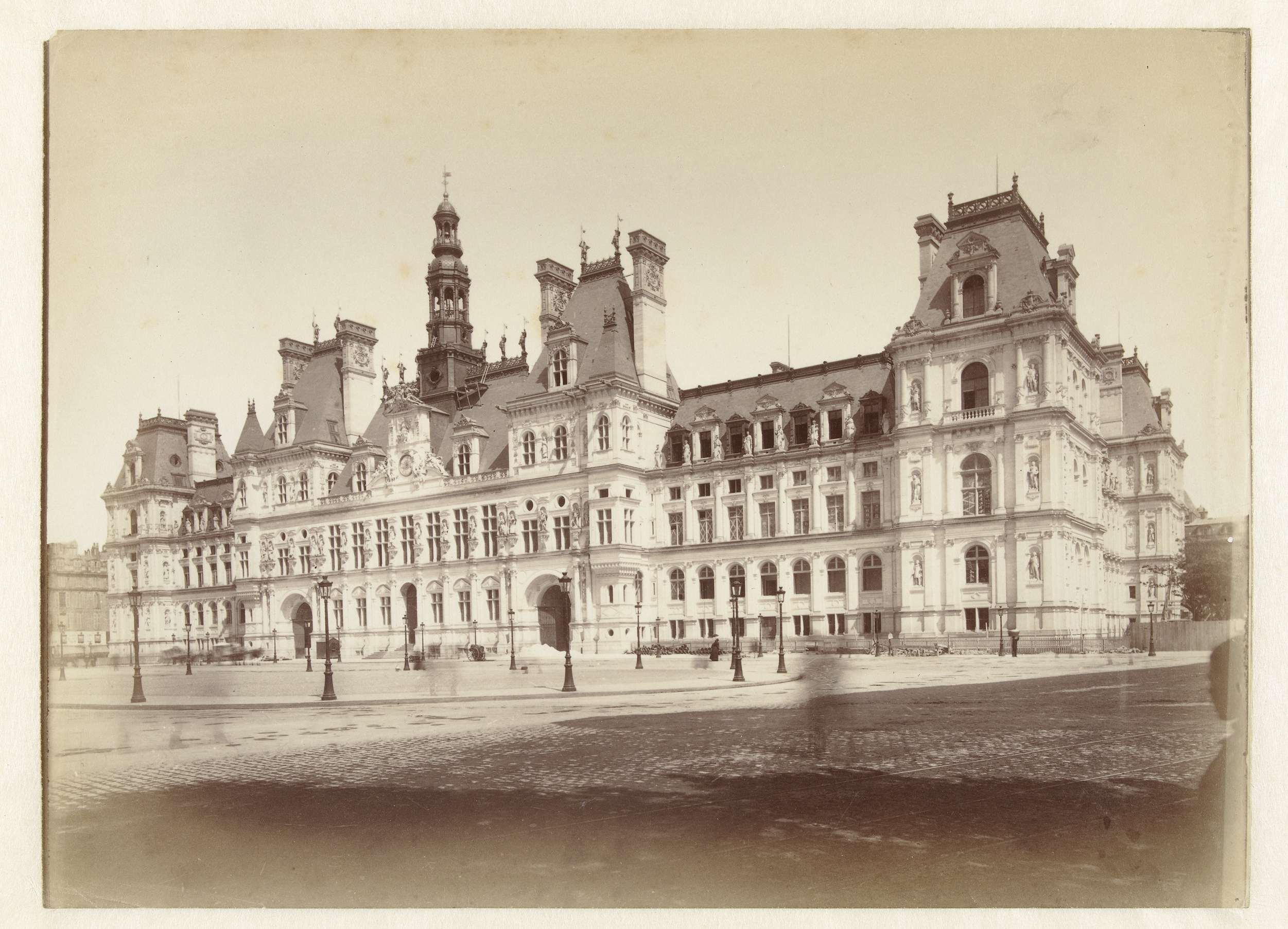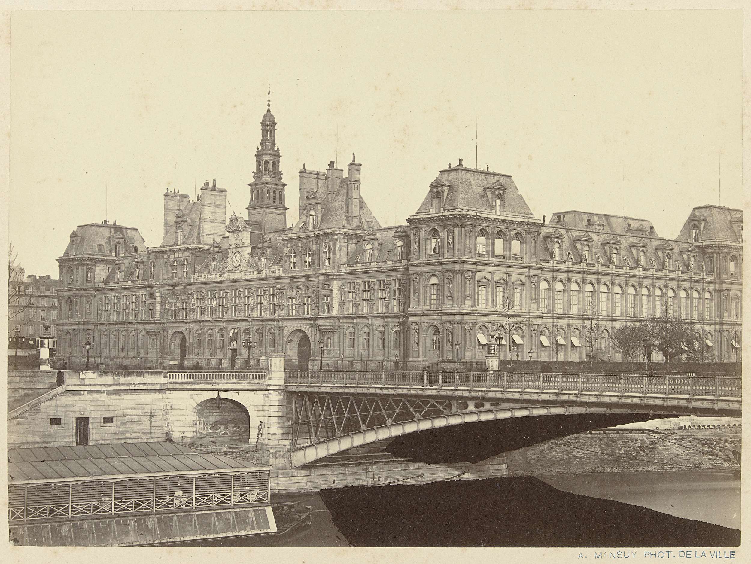 Gezicht op het stadhuis van Parijs en de Pont d'Arco...