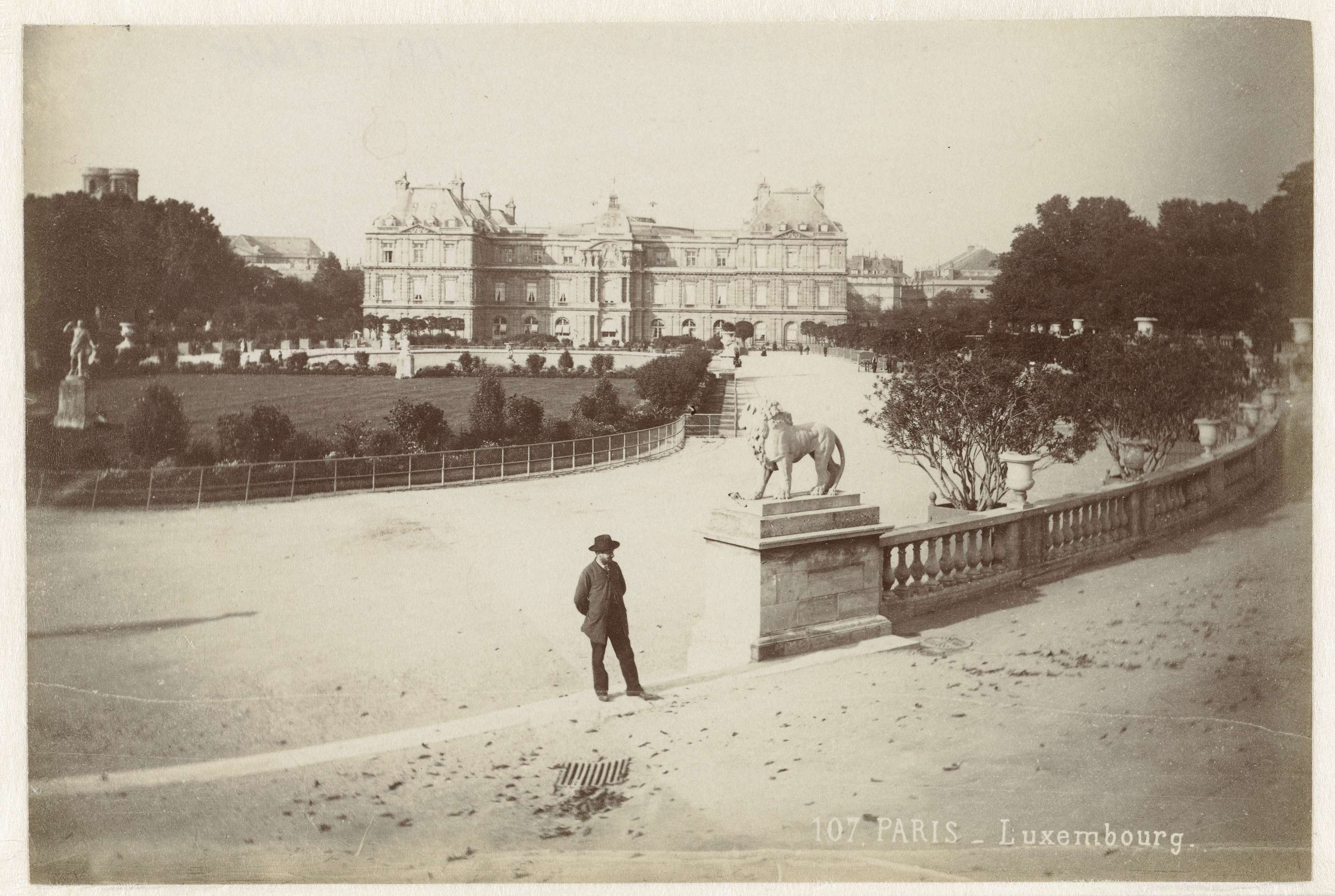 Gezicht op het Louvre vanuit de Tuilerieën te Parijs