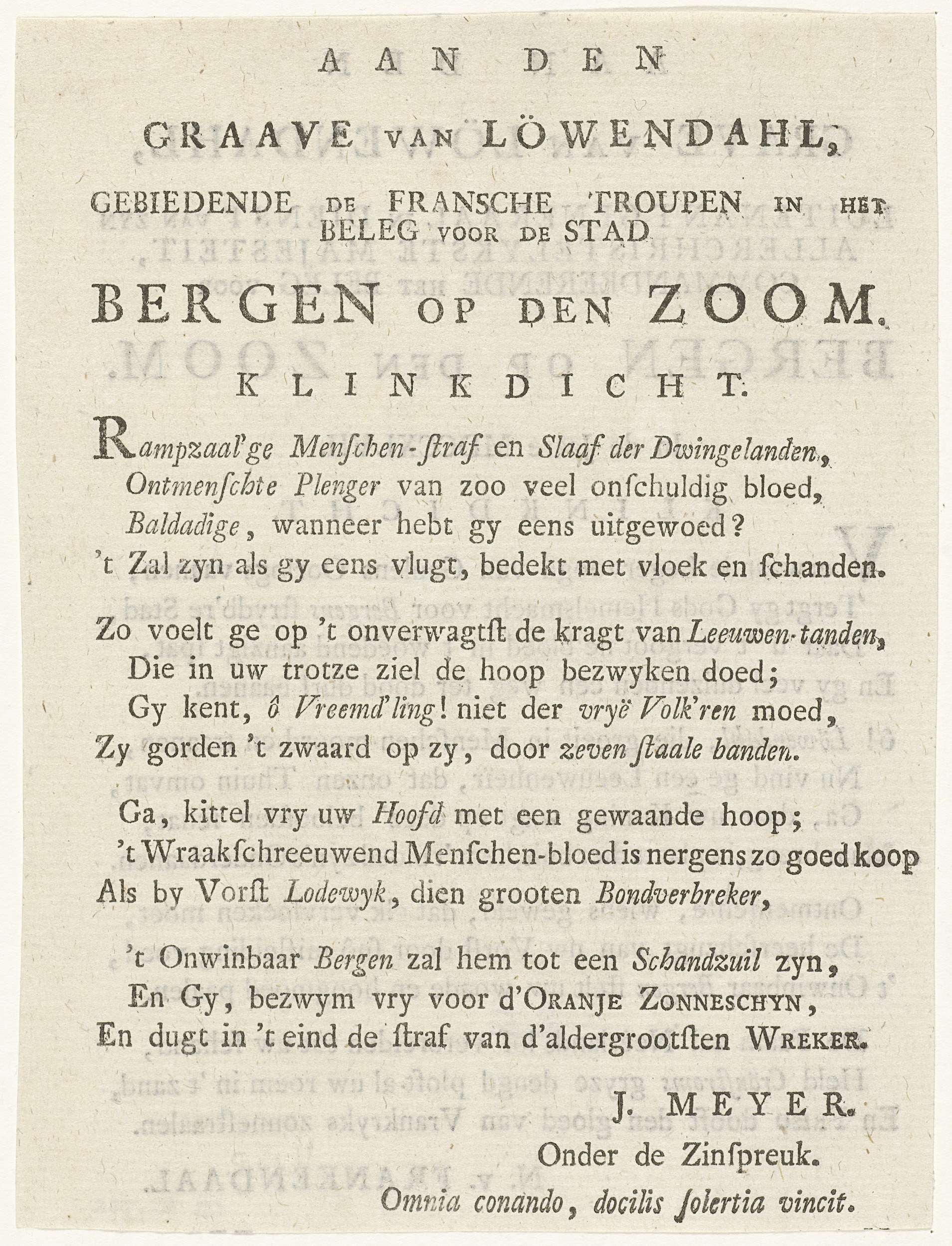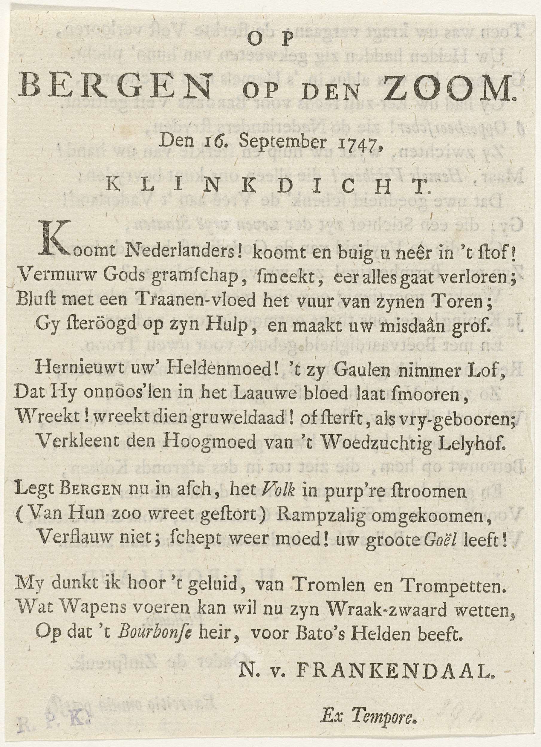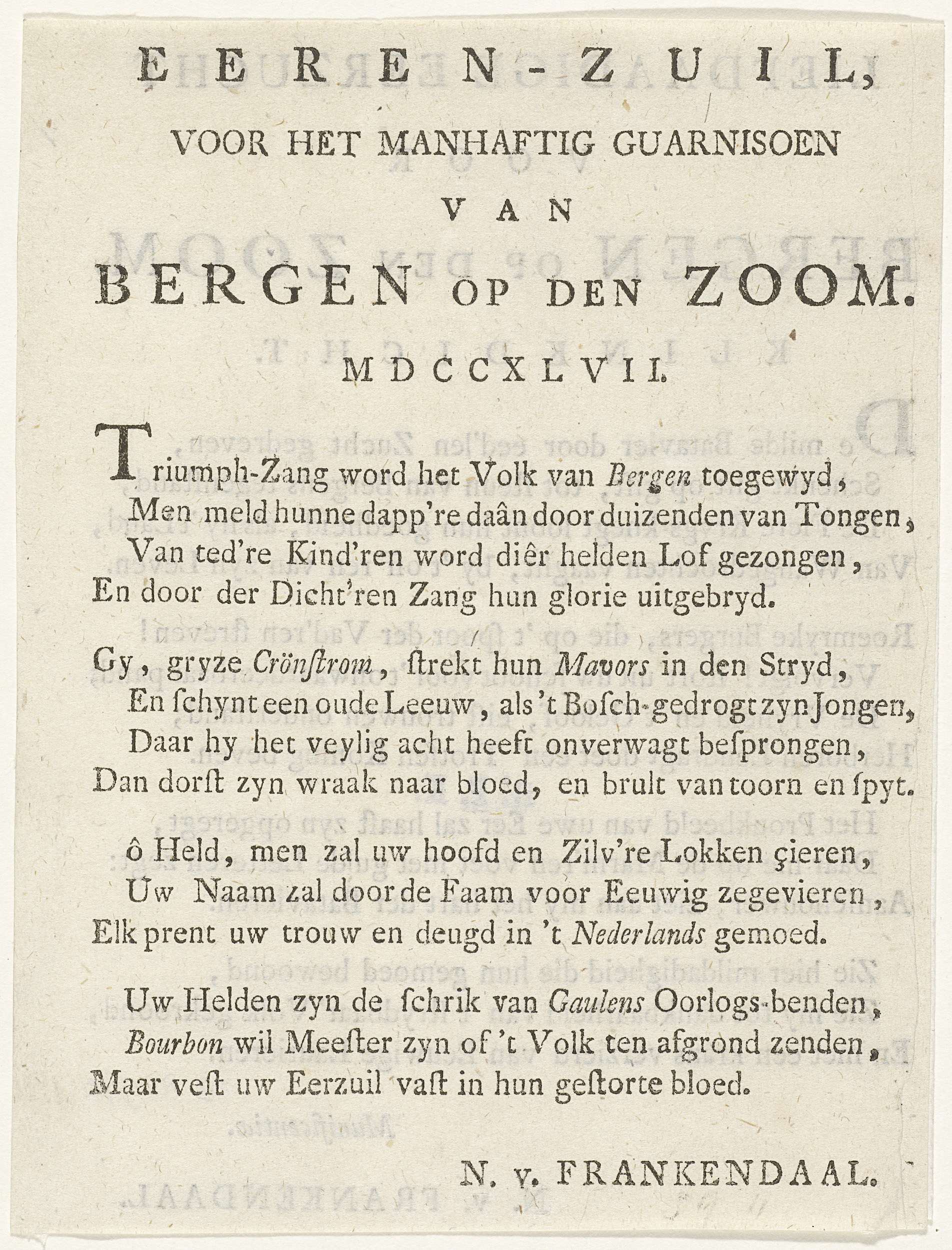 Vers op de verdediging van Bergen op Zoom tegen de F...