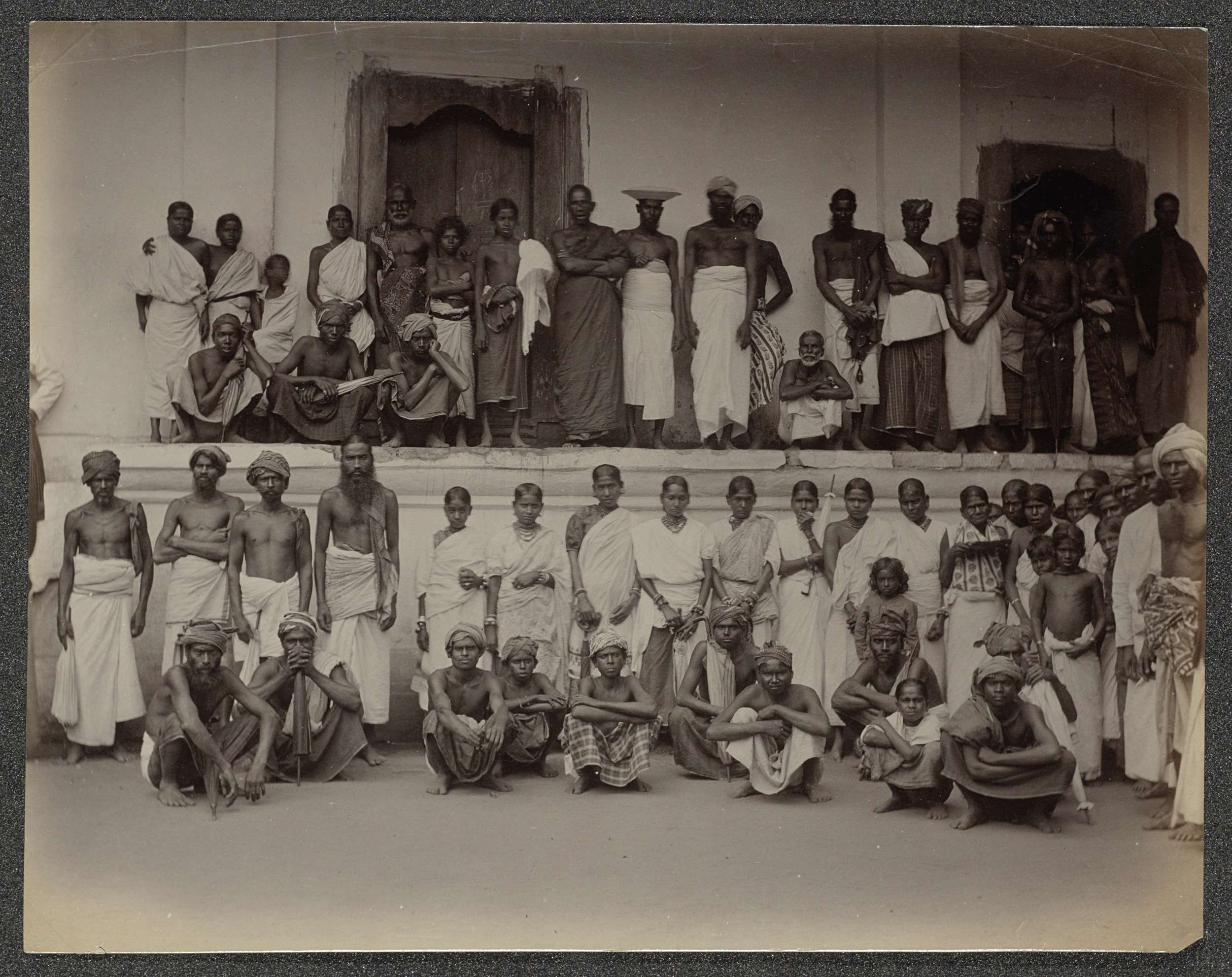 Mannen en vrouwen poserend voor een gebouw, mogelijk...