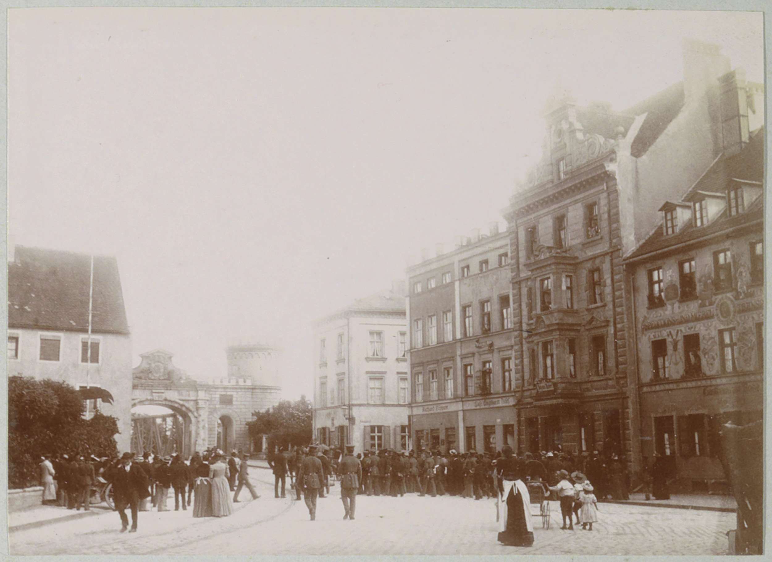 Mensen op de Donaustrasse in Ingolstadt, op de achte...