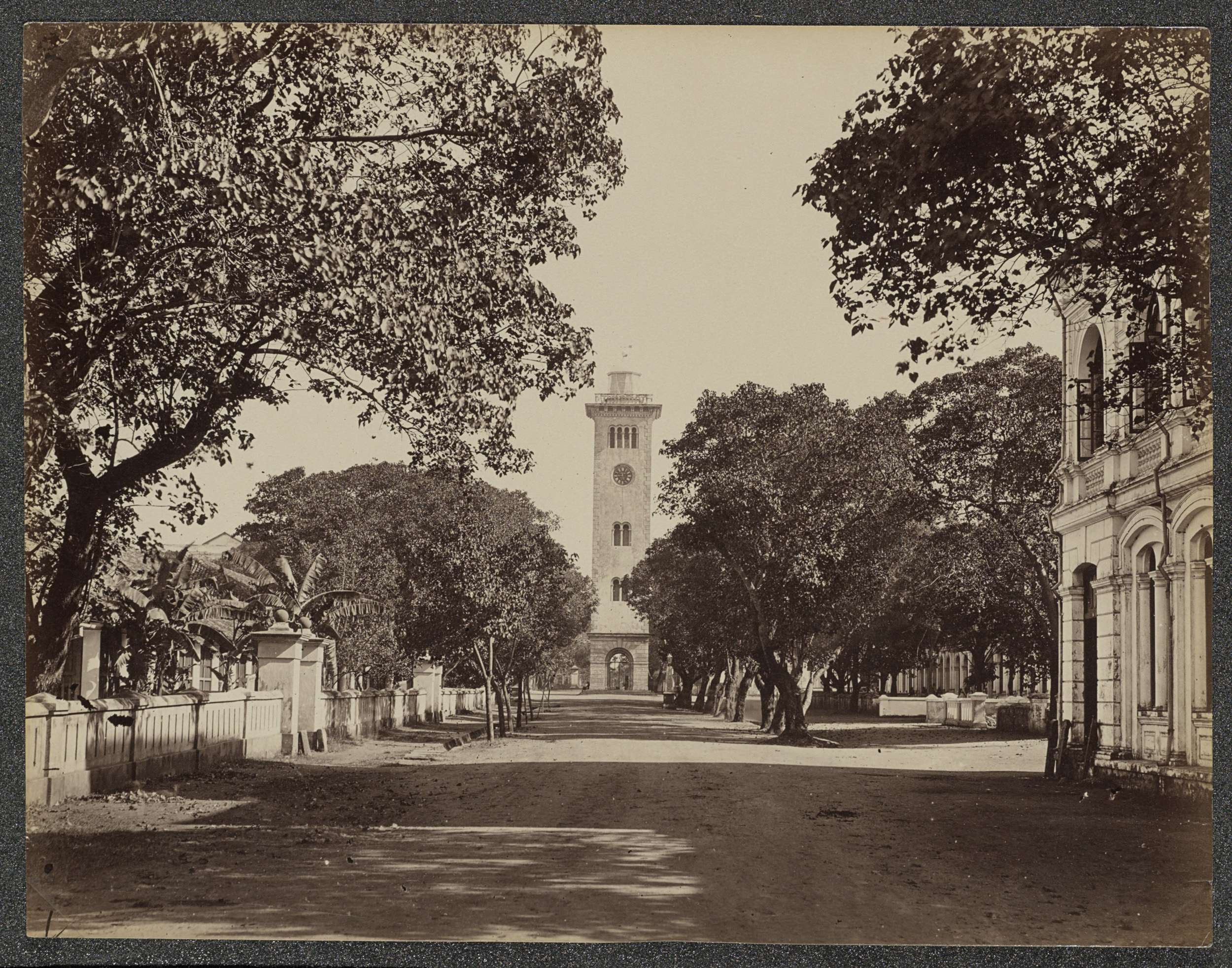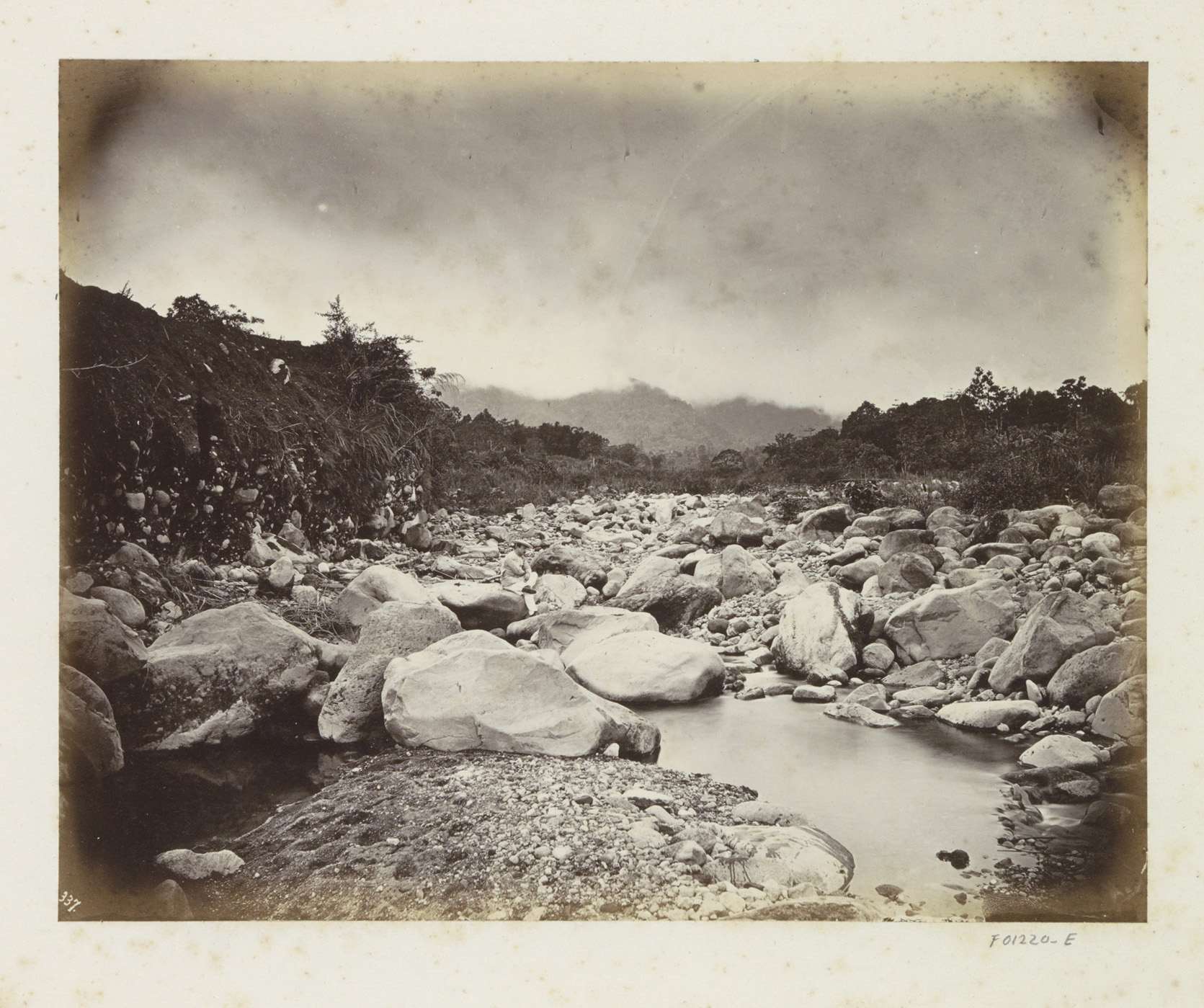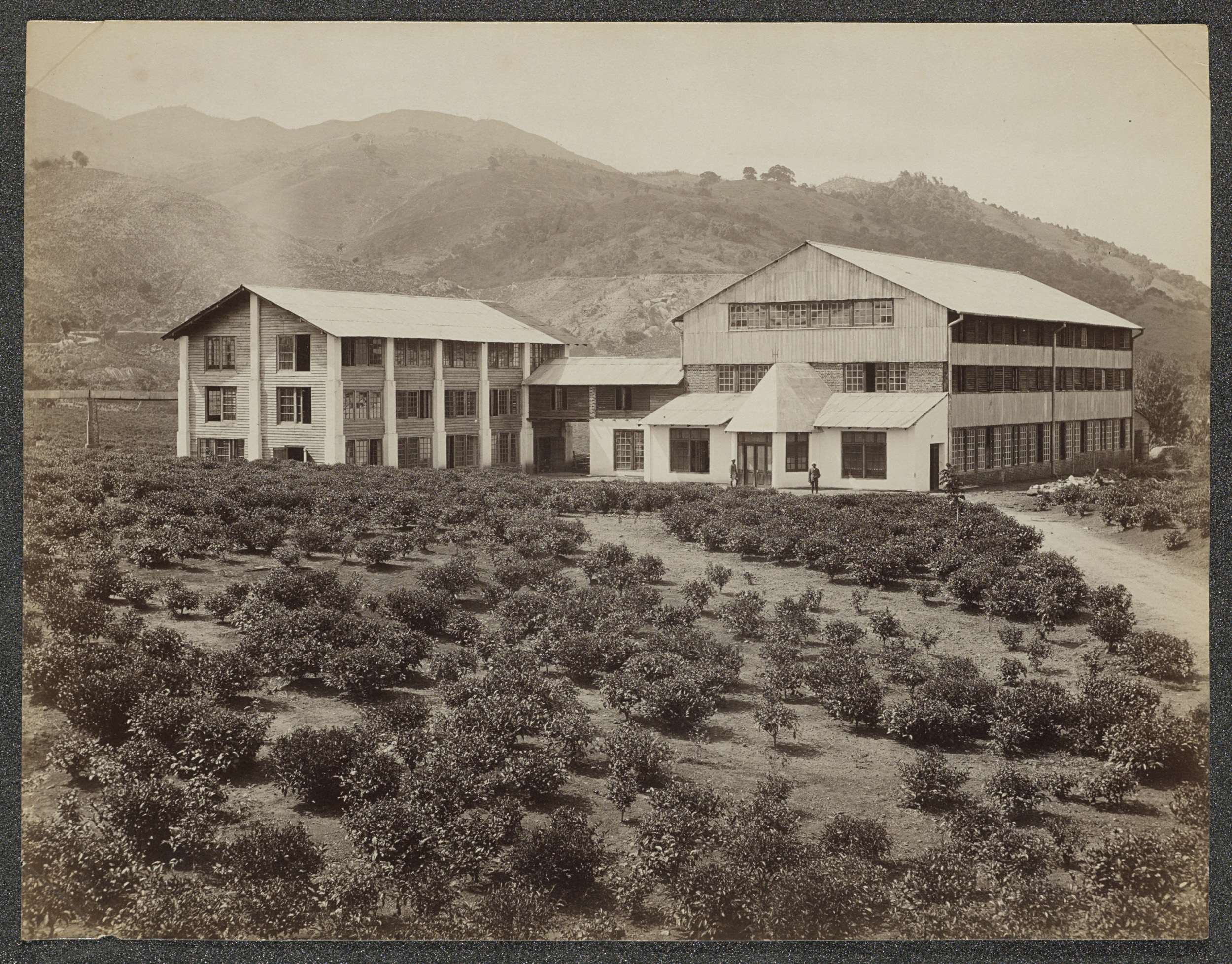 Gezicht op gebouwen en plantage van de theefabriek P...