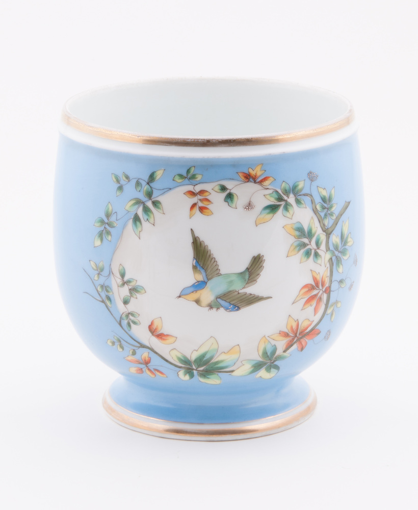 Cachepot van aardewerk, 2 stuks, lichtblauw met voge...