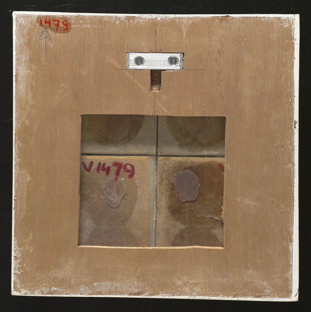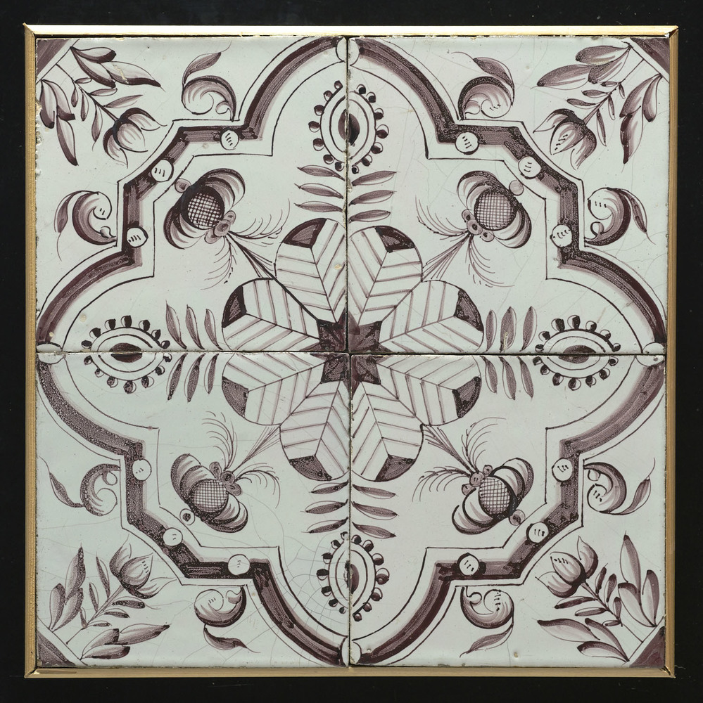 Tegelveld in tinglazuur, voorstellende beugeltassen,...