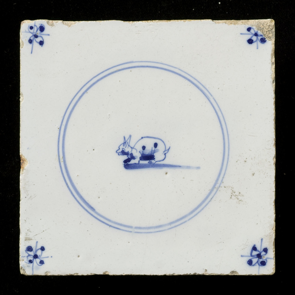 tegel van aardewerk met tinglazuur, voorstellende: s...