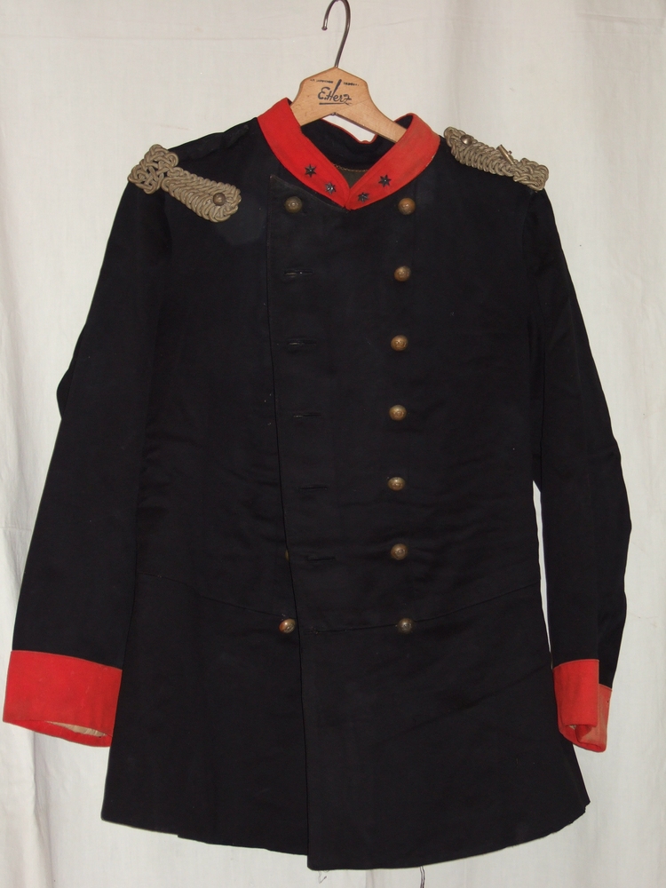 uniformjas van donkerblauwe en rode wol met schouder...
