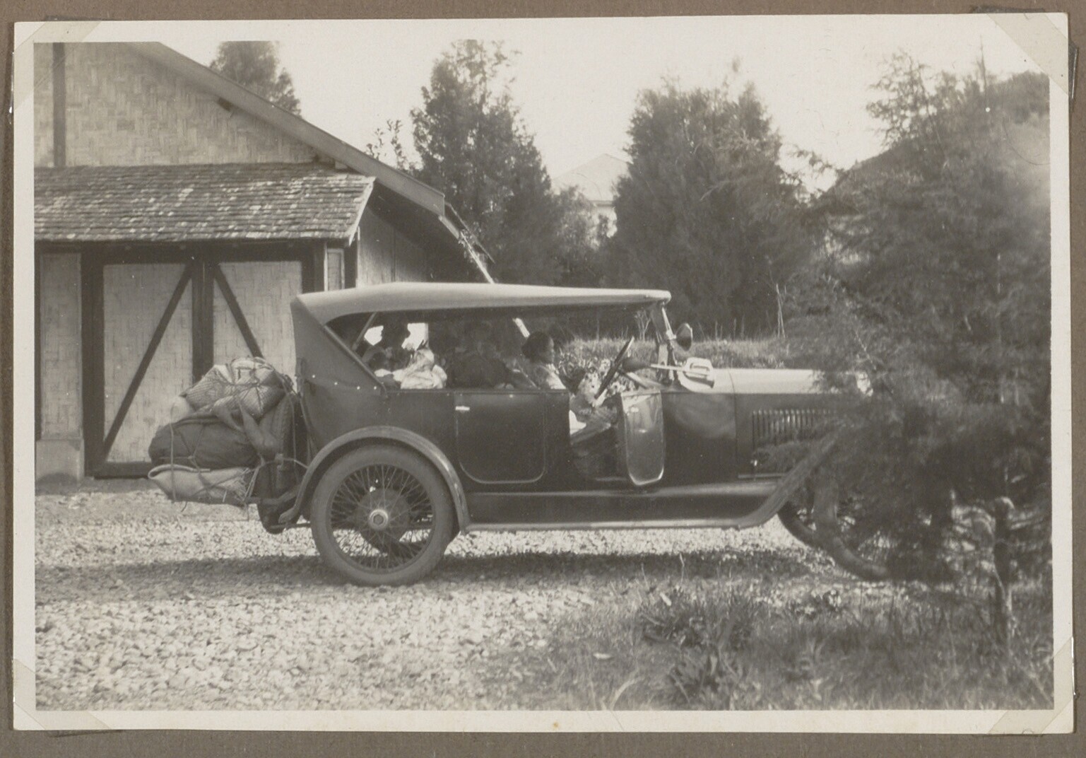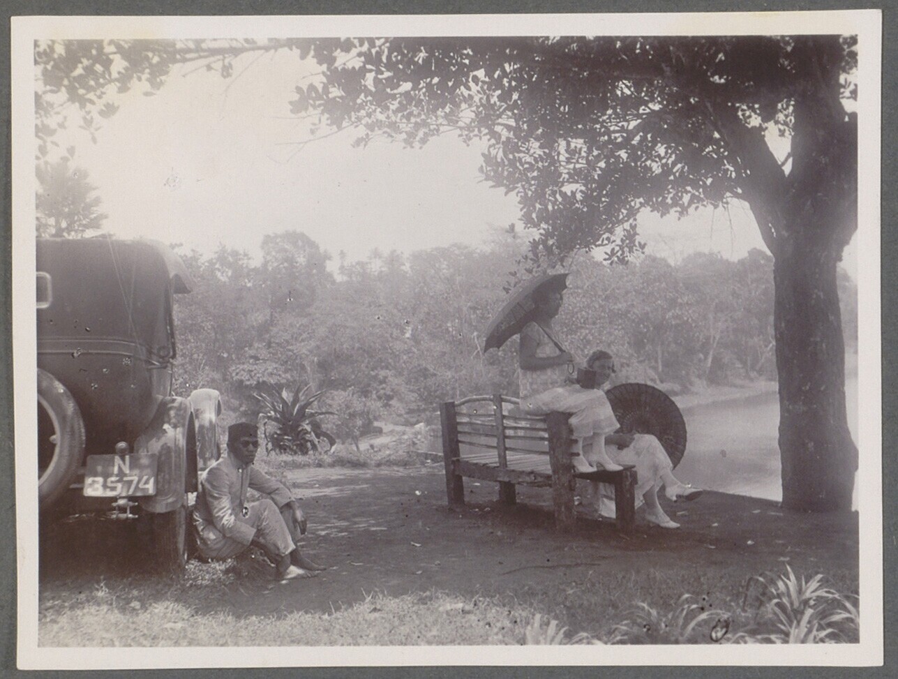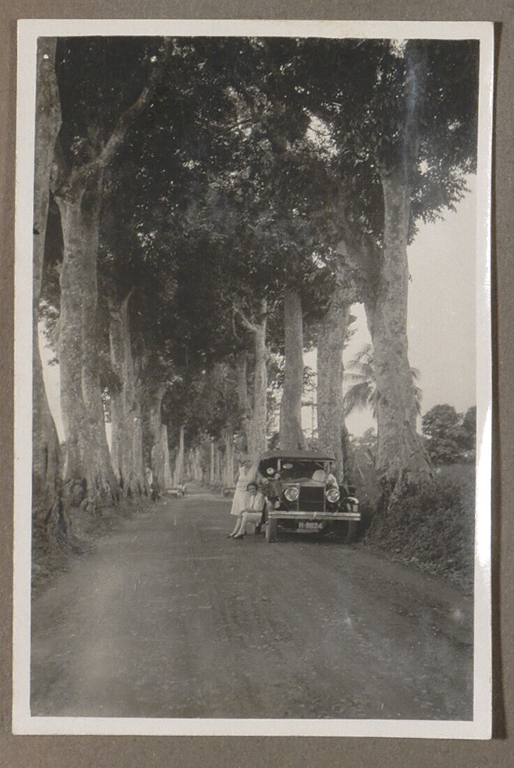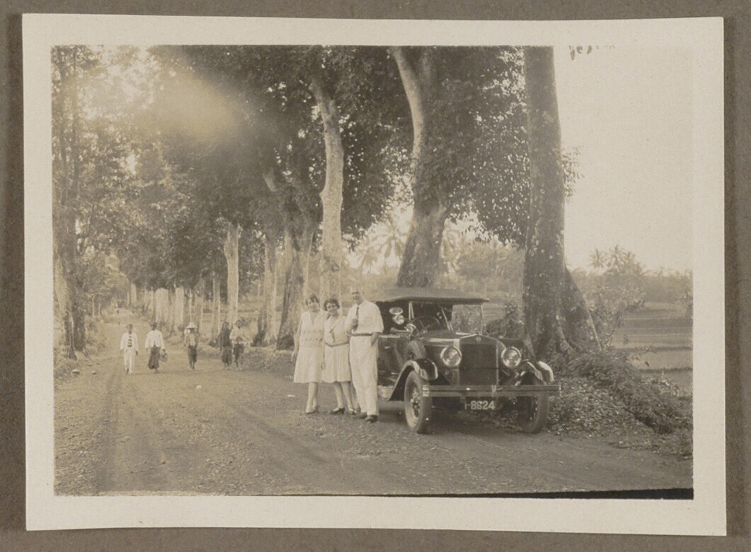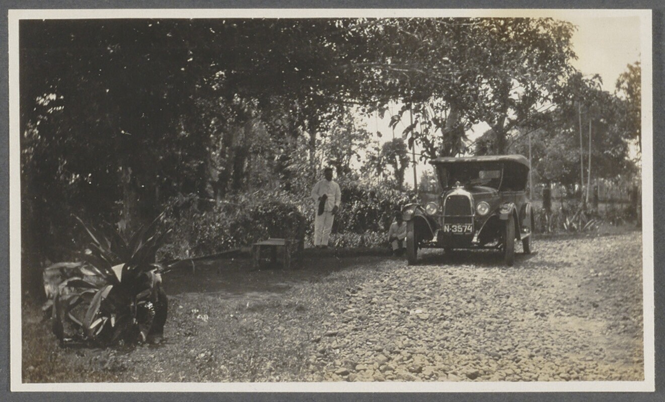 Geparkeerde auto met Javaanse chauffeur en Europese man