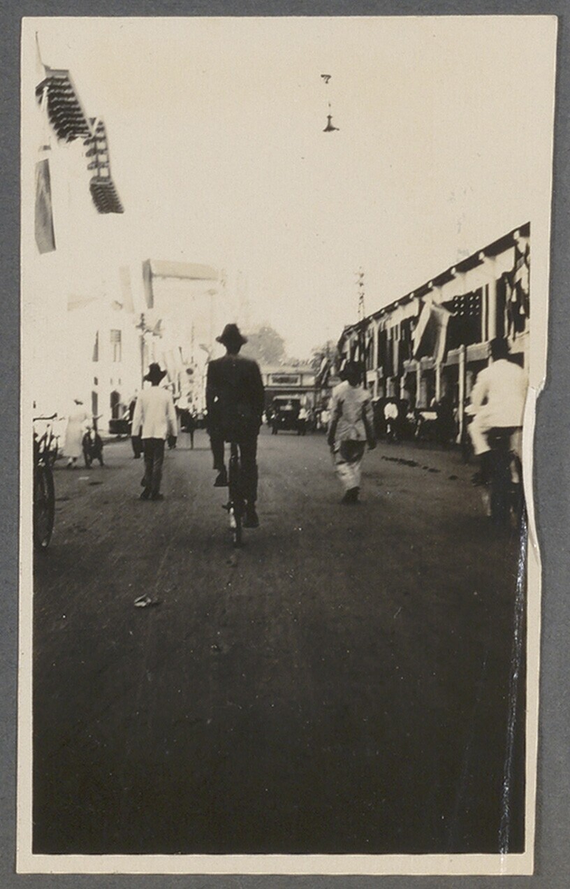 Straatgezicht met javaanse voetgangers en fietsers