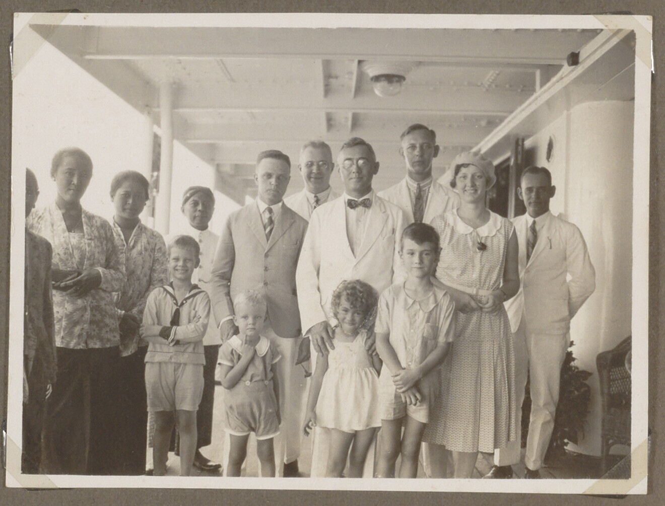 Europese familie met Javaans personeel aan dek van e...