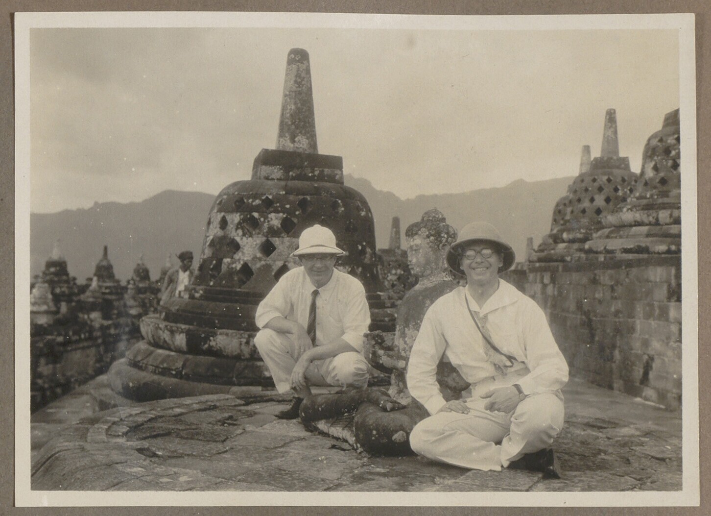 Gezicht op kleine stoepa's Borobodur met twee europe...