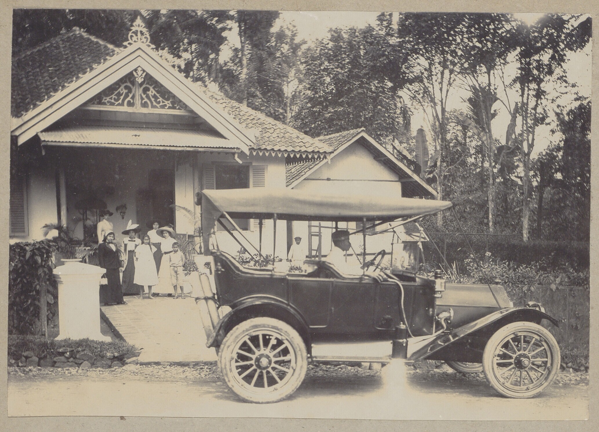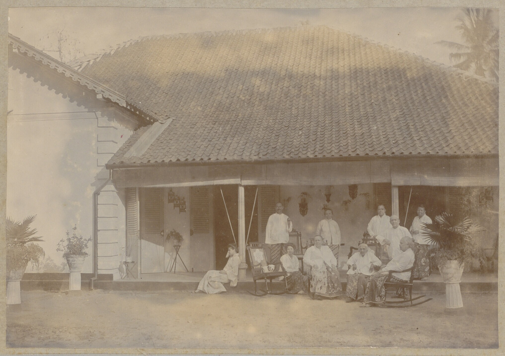 De familie Hummelgens voor het huis te Poerworedjo