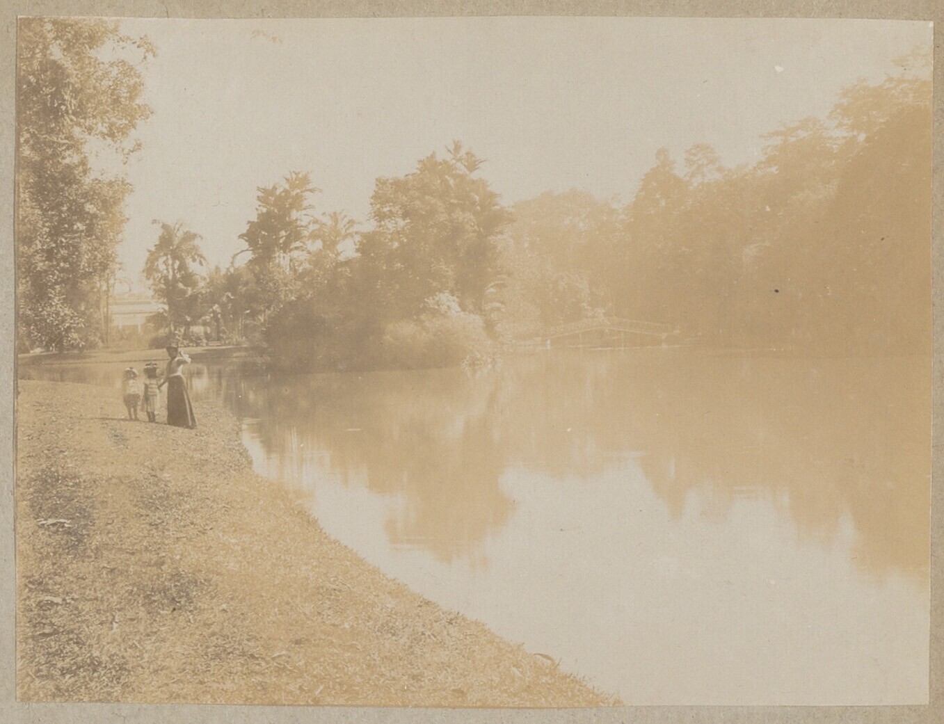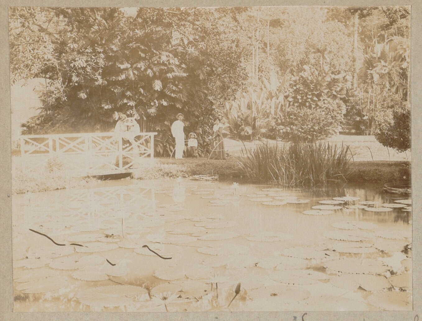 Een vijver in de plantentuin te Buitenzorg, een groe...