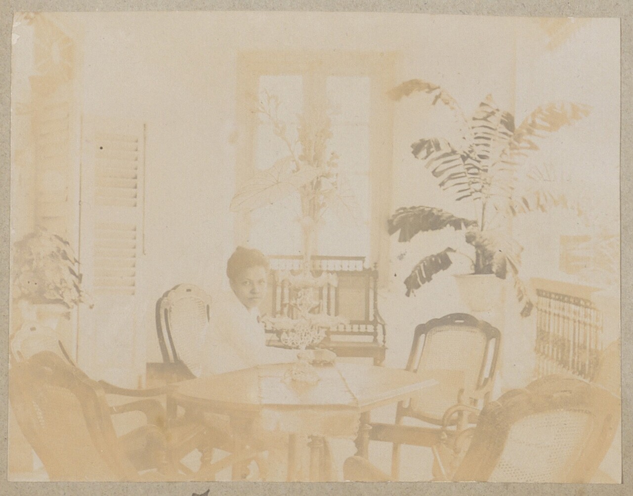 Vrouw in interieur van woning. 1907