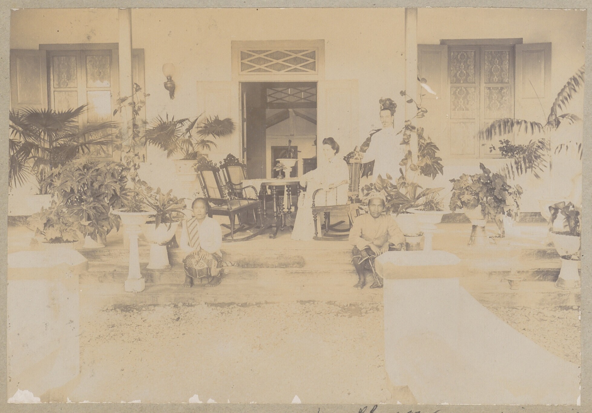 De familie Elziman met huispersoneel op voorgalerij ...