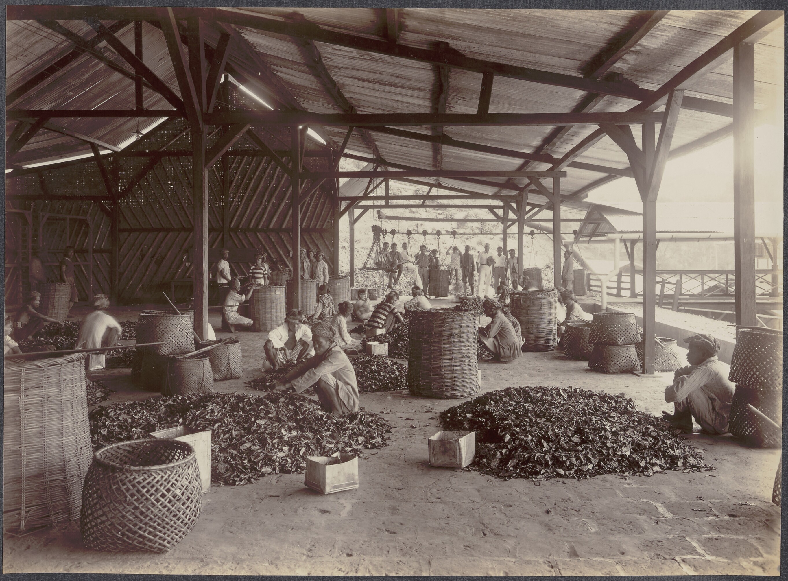 Europese opzichters en Javaanse arbeiders in poetjoe...