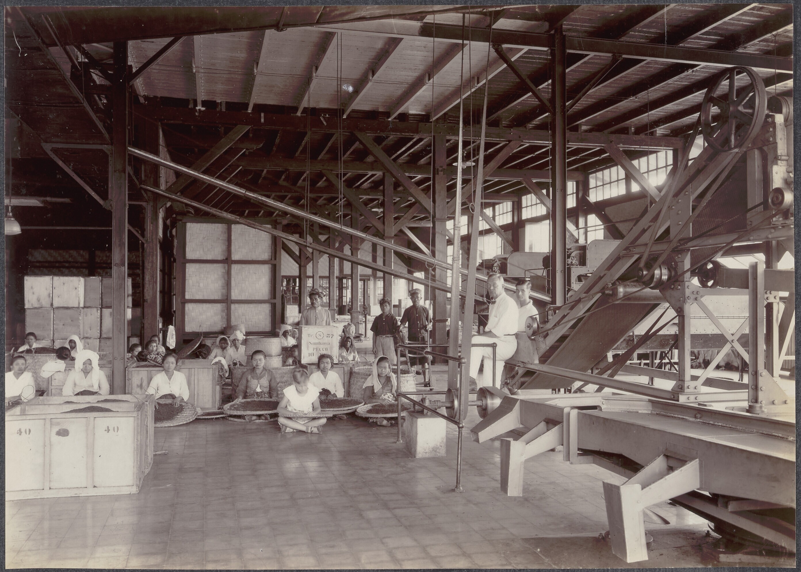 Europese opzichters en Javaanse arbeiders in Sambawa...