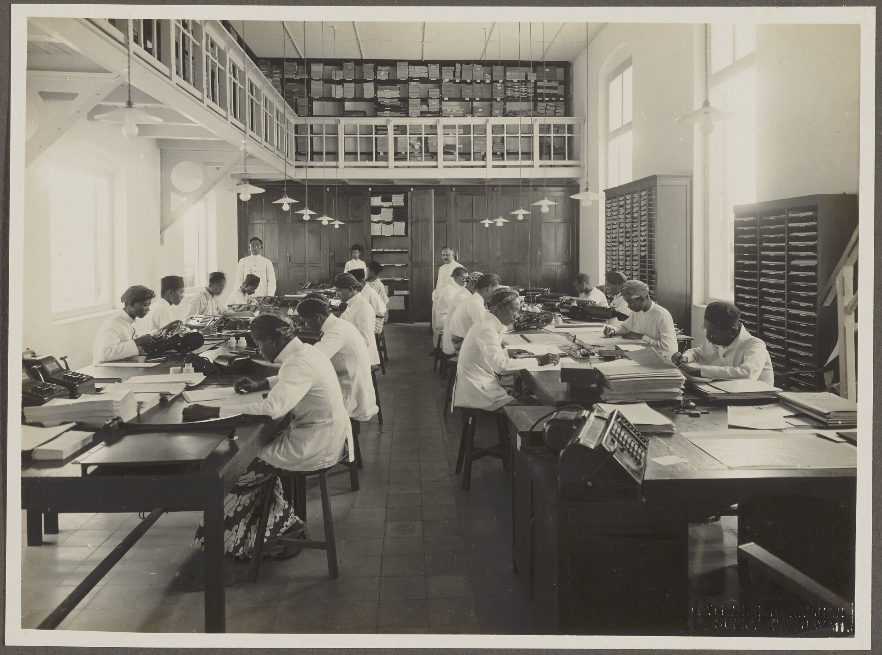 Europese opzichters en Javaanse arbeiders in het kan...