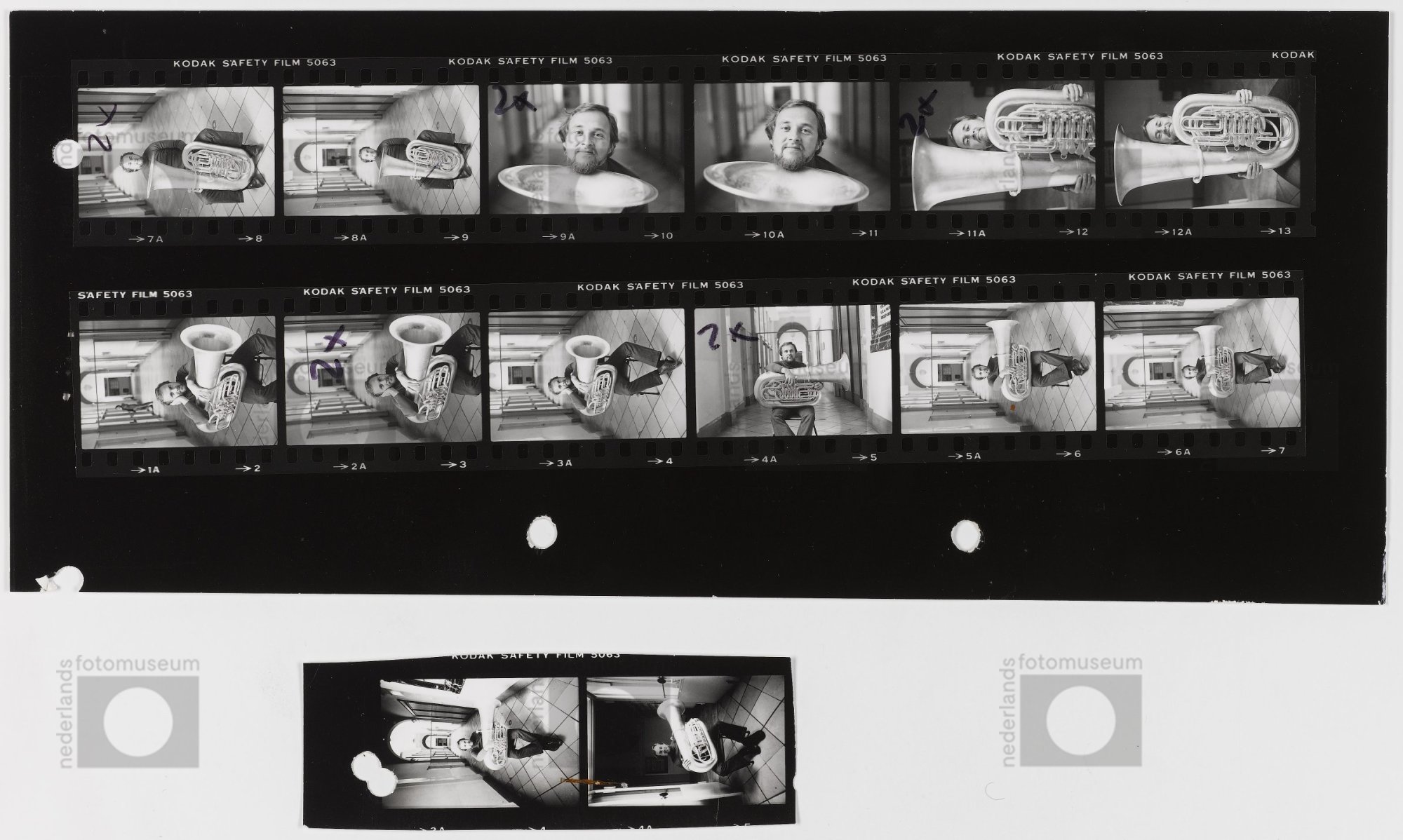 Portret Donald Blakely, tubaspeler C.O. orkest