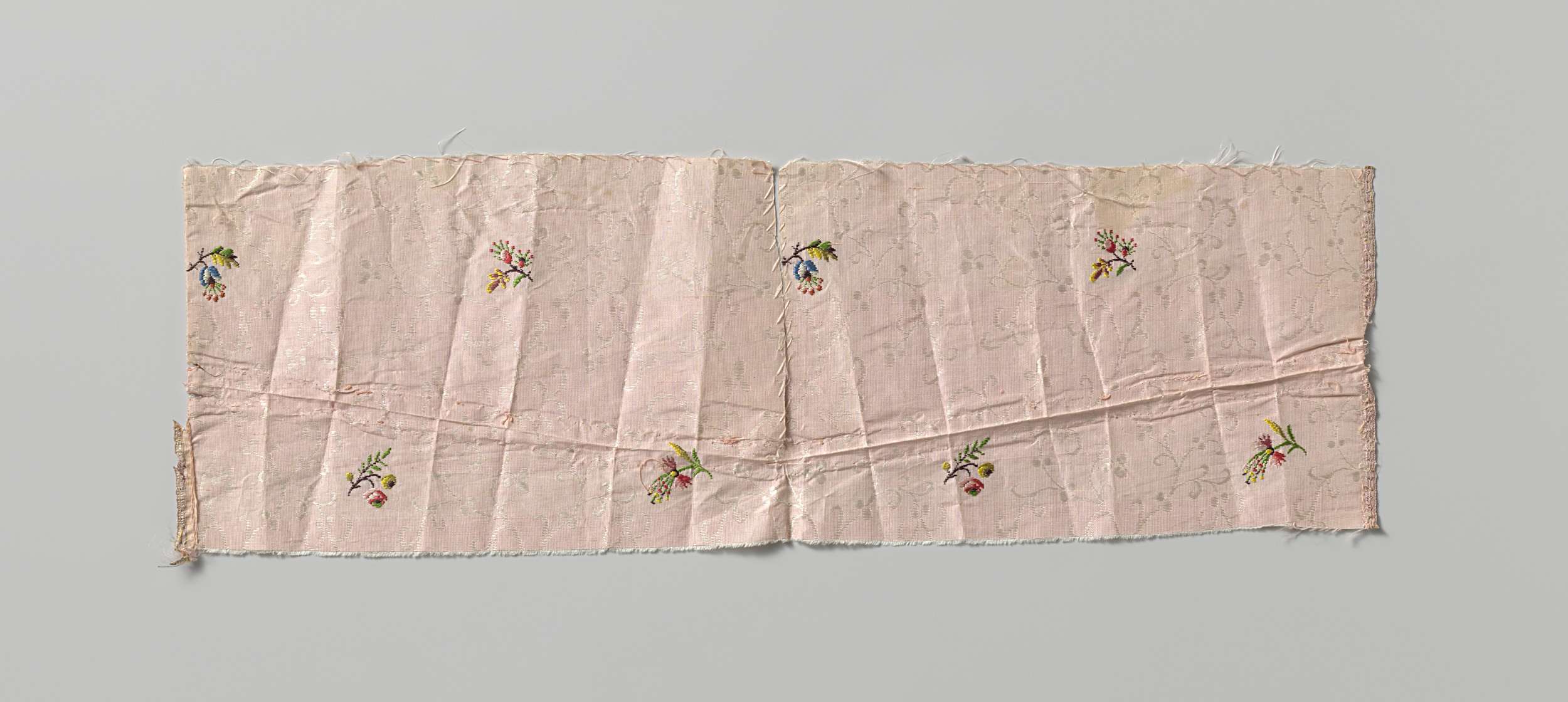 Staal gebrocheerde zijde, roze, met witte ranken en ...