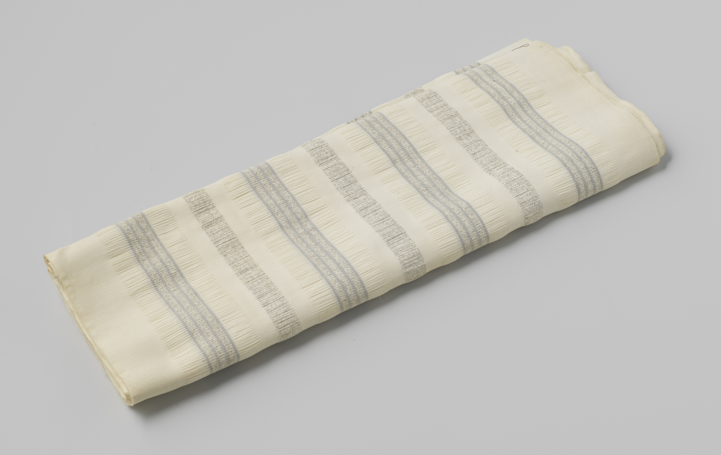 Parasolsector van wit katoen met crêpe strepen en gl...