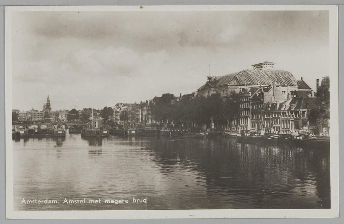 Ansichtkaart van Amsterdam, Amstel met magere brug e...