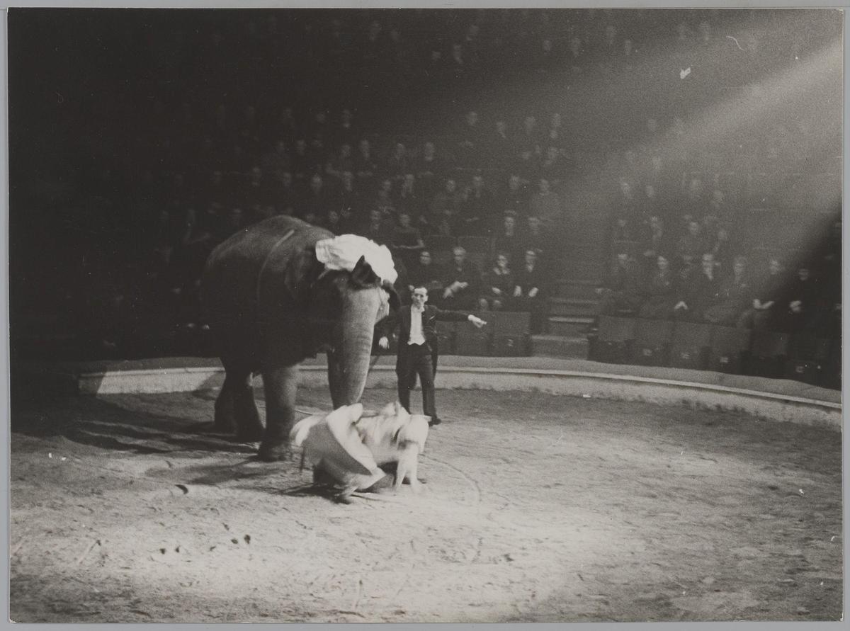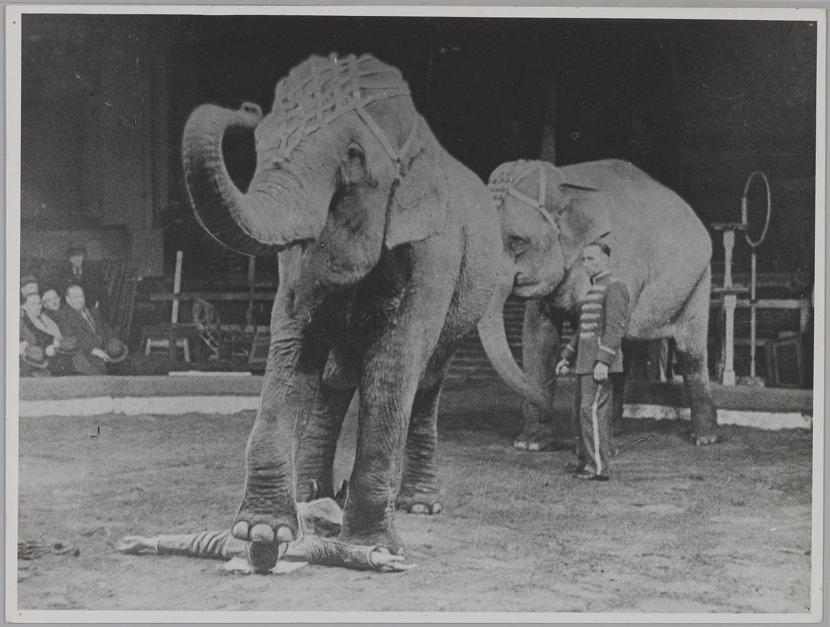 Circus Strassburger. Werkolifant voor roofdierenwage...