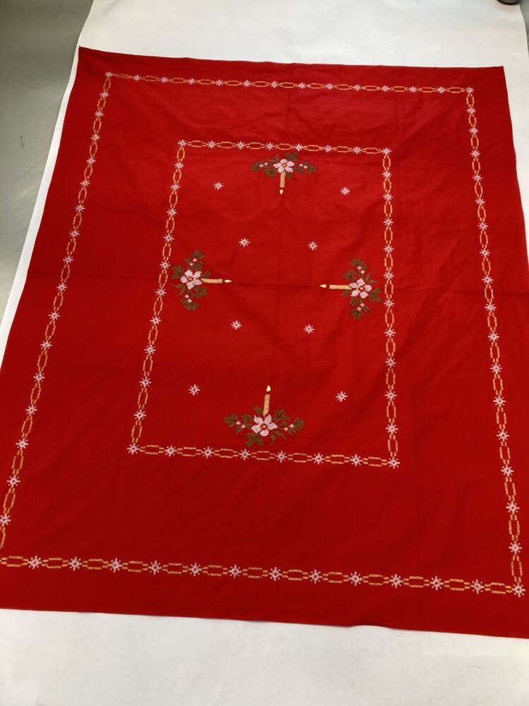 Kerstkleed, geborduurd op rood katoen met voorbedruk...
