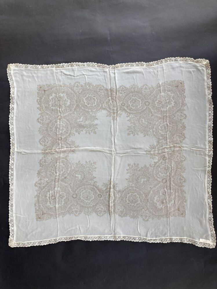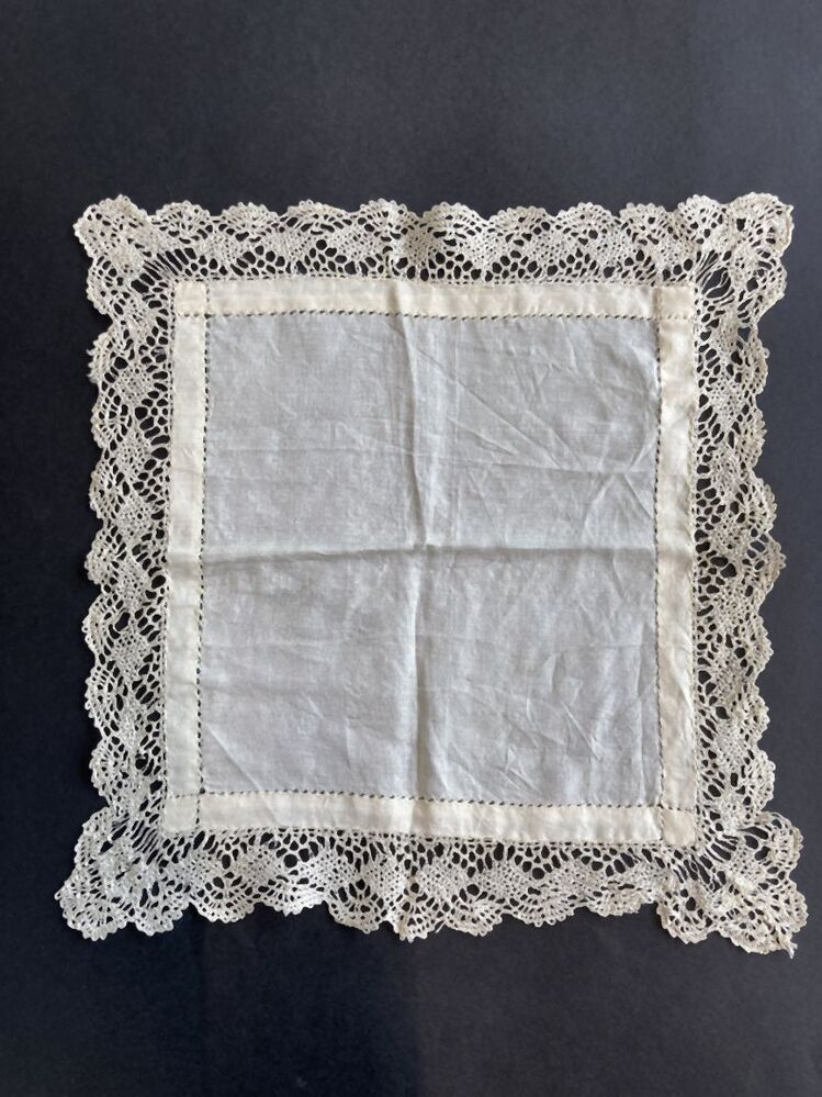 Zakdoek van crème zijde en zijden torchon kloskant rand