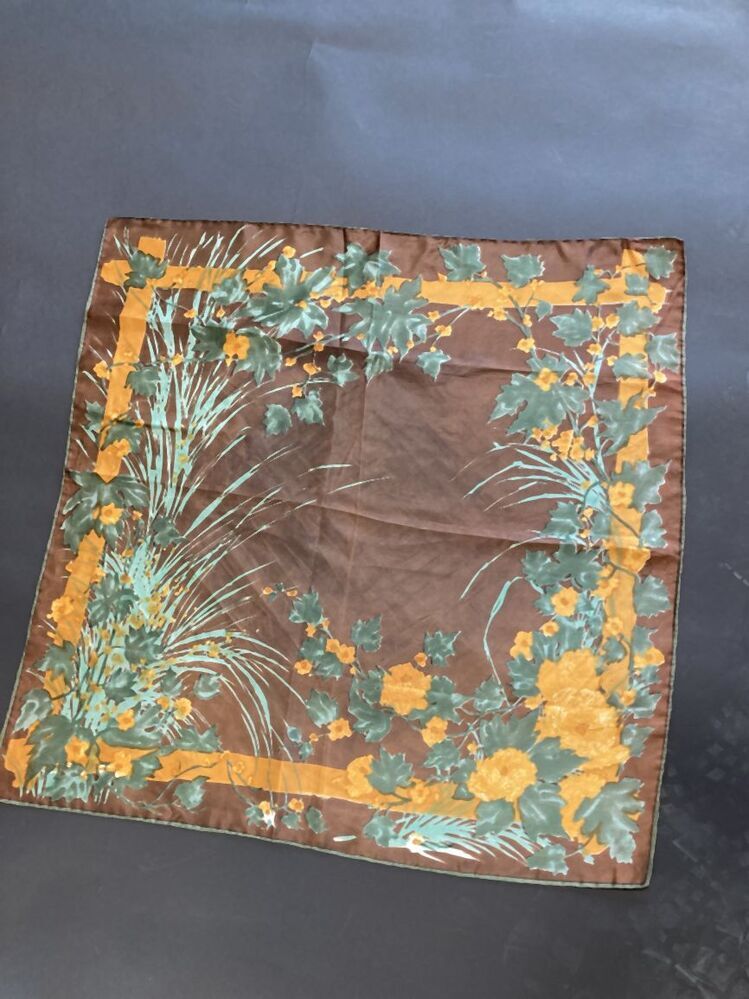 Bruin sjaaltje van synthetisch satijn bedrukt met as...