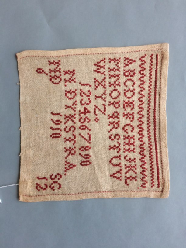 Letterlap van N. Dijkstra 1910, katoen op stramien, ...