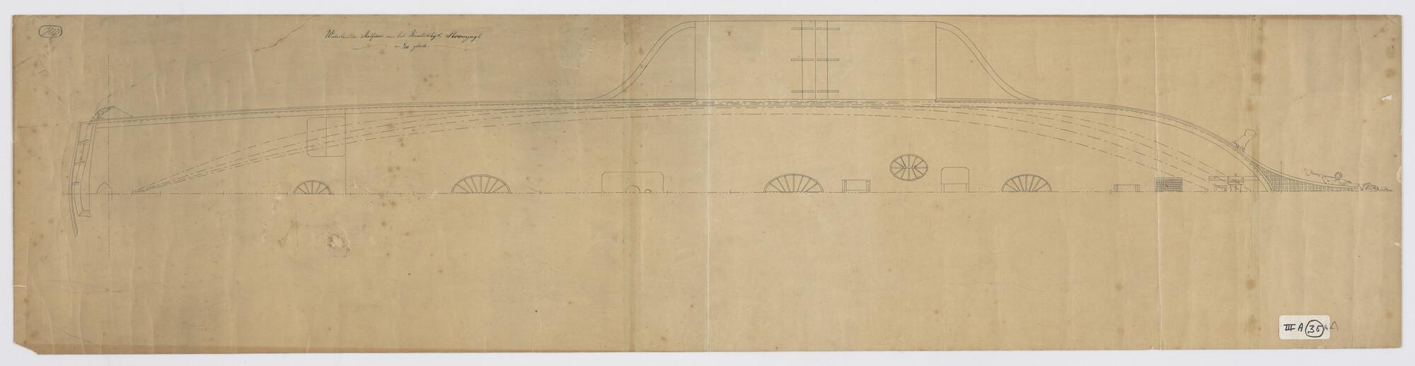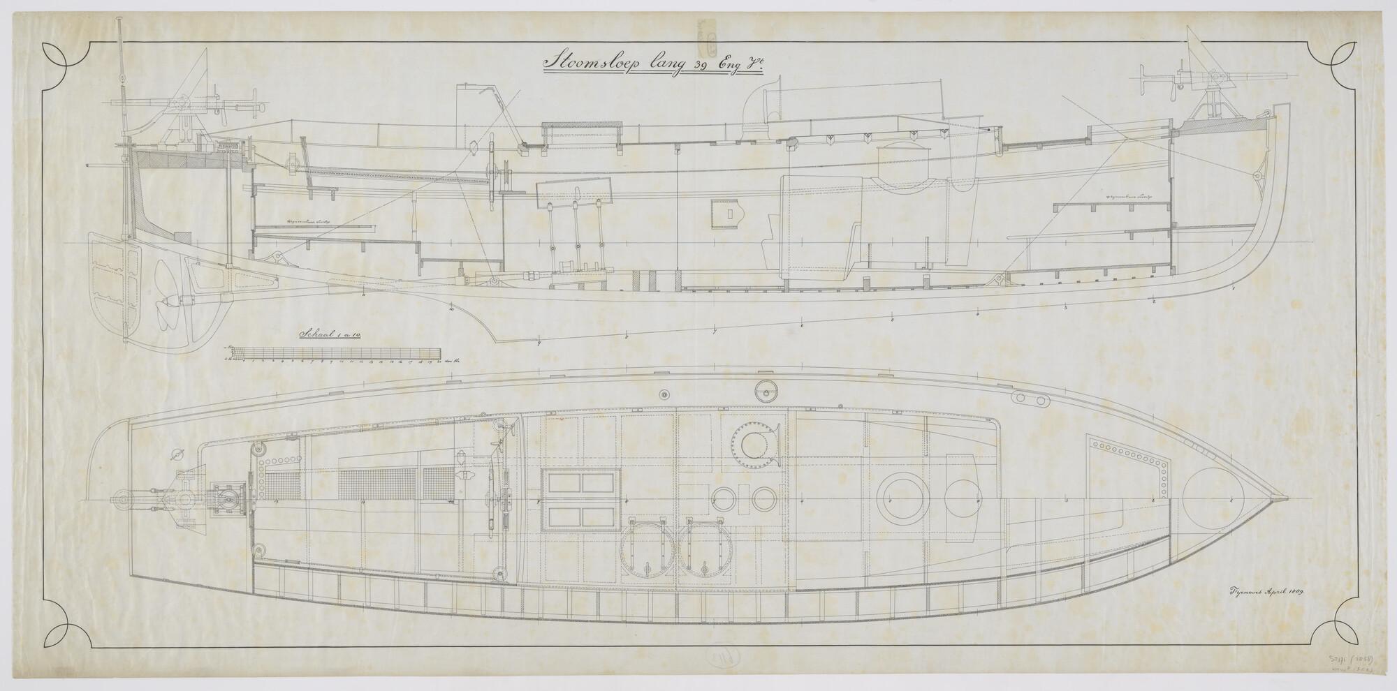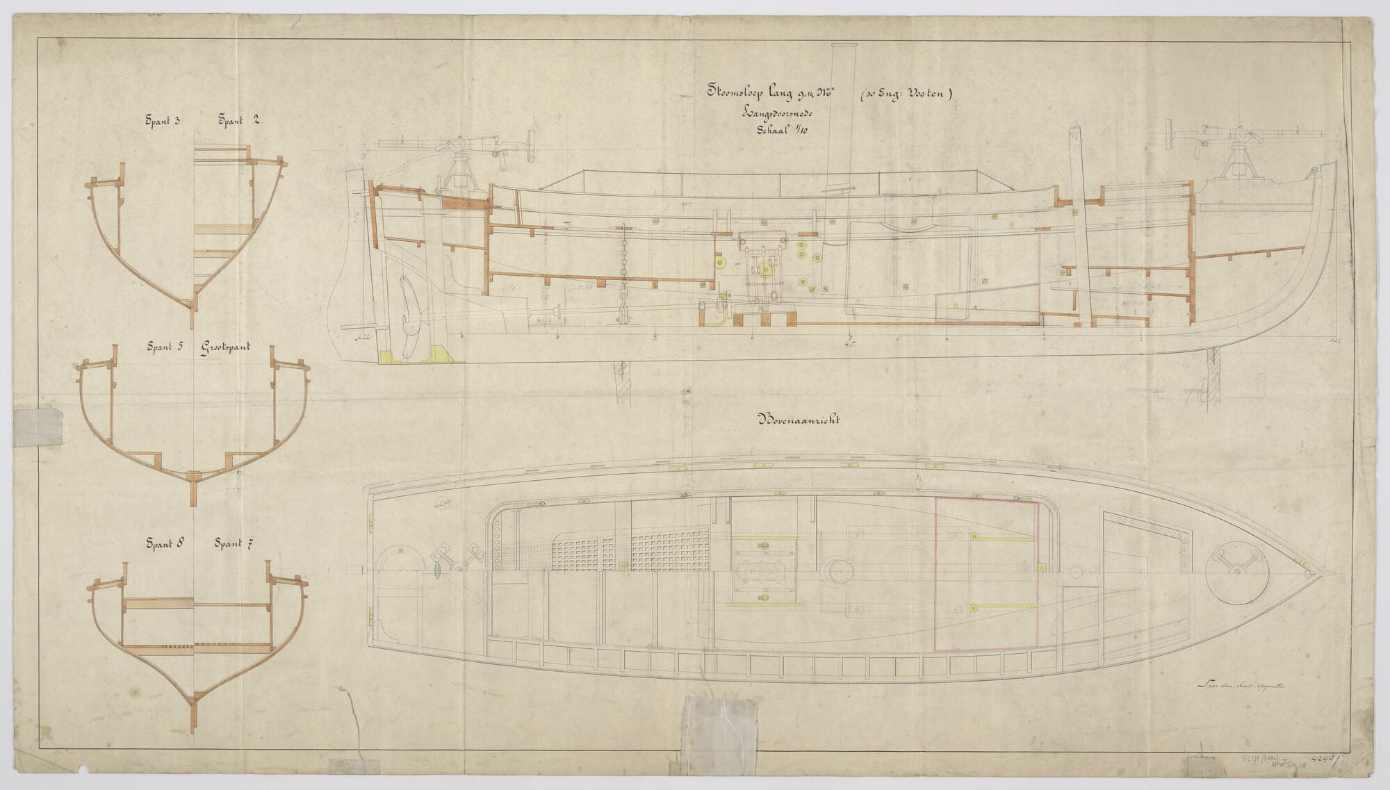 Bovenaanzicht en langsdoorsnede van een 39-voet stoo...