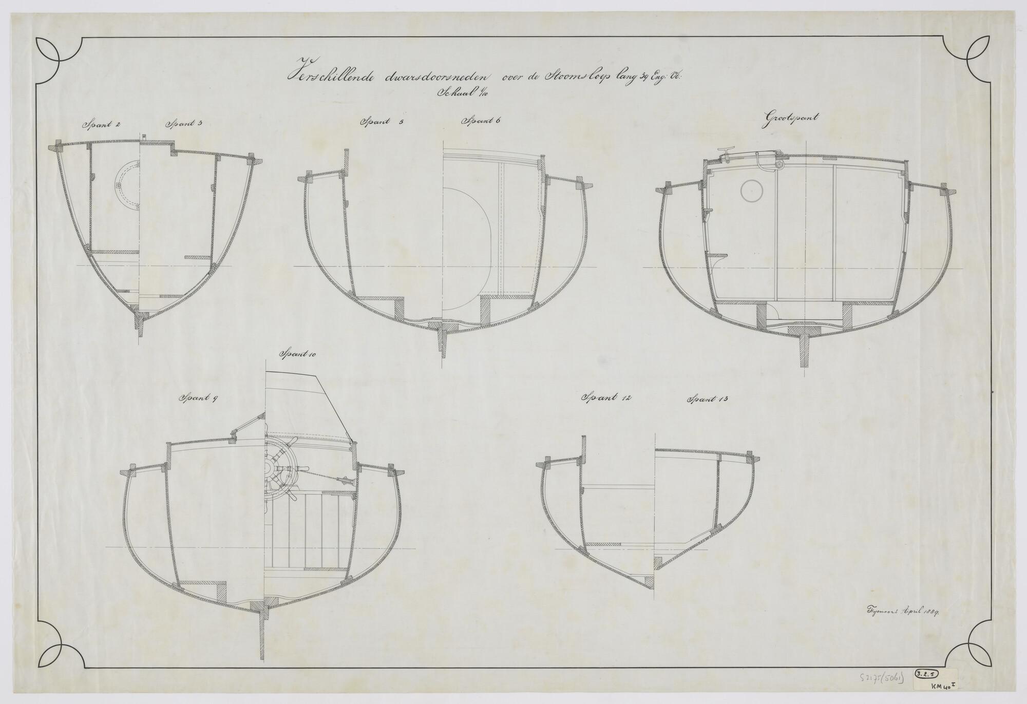Dwarsdoorsneden over diverse spanten van een 39-voet...
