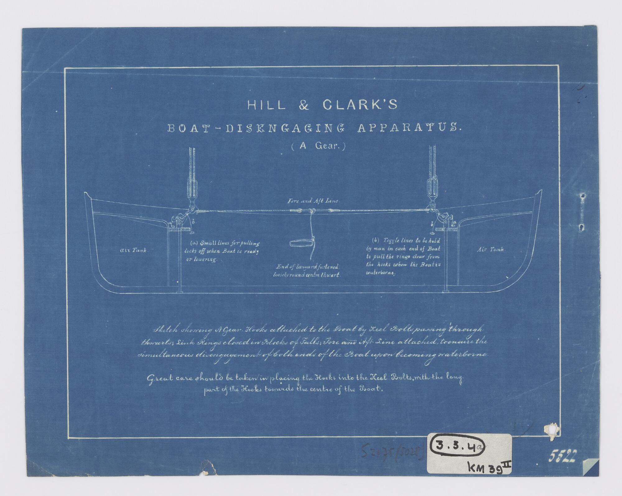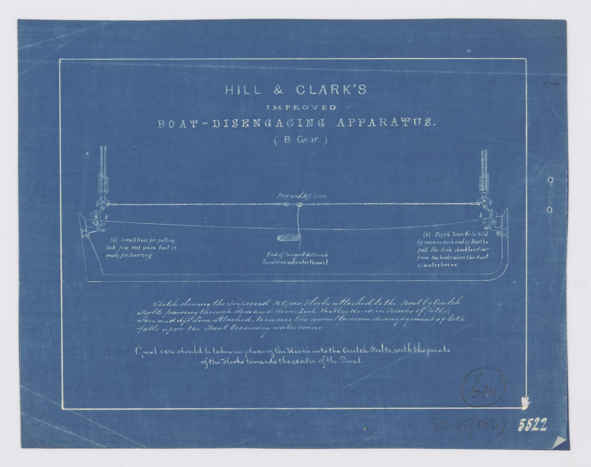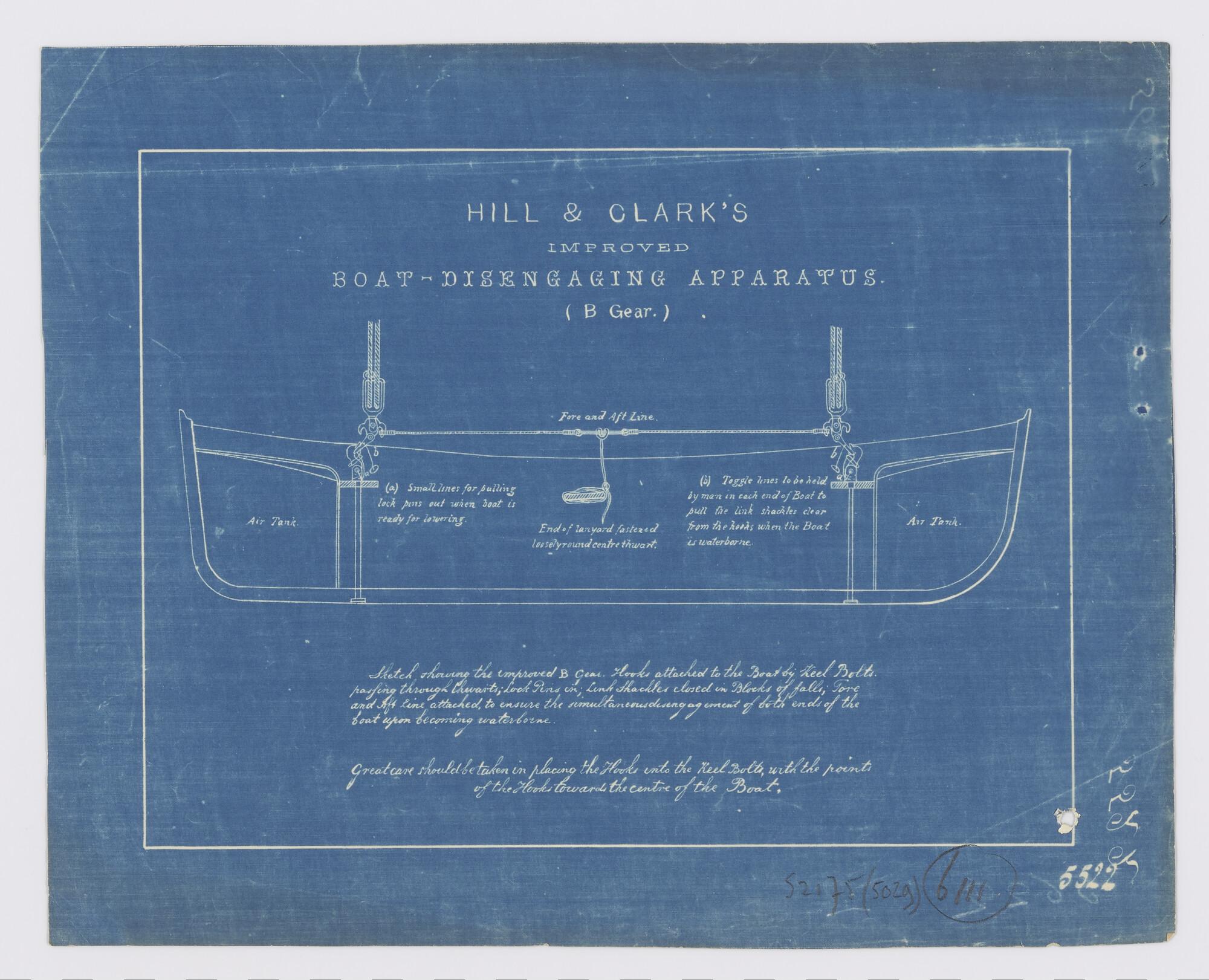 Langsdoorsnede van een sloep met verbeterde hijsinri...