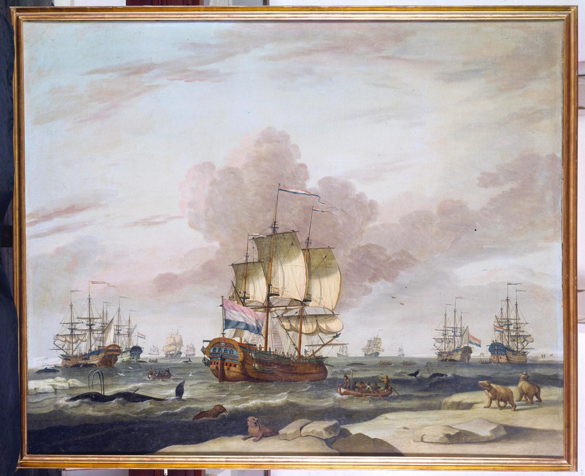 Zijaanzicht van de stoomschepen voor de gouvernement...