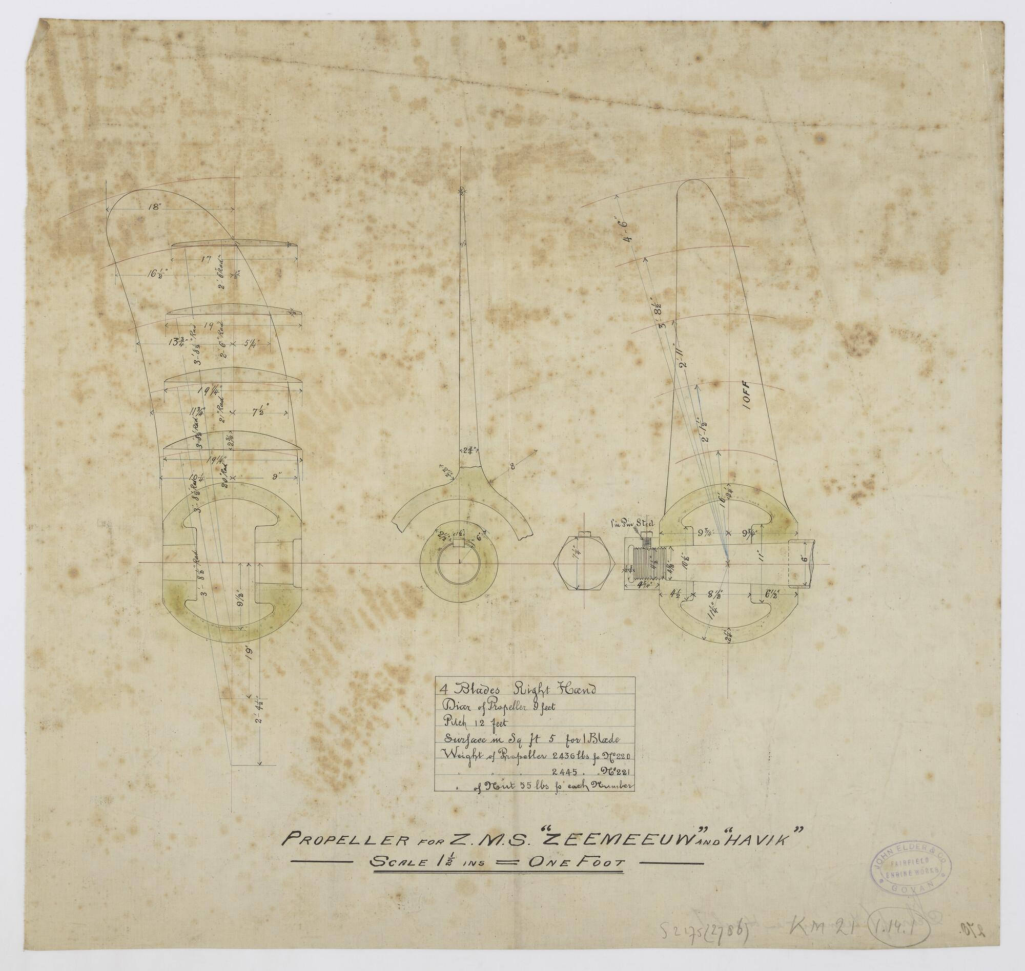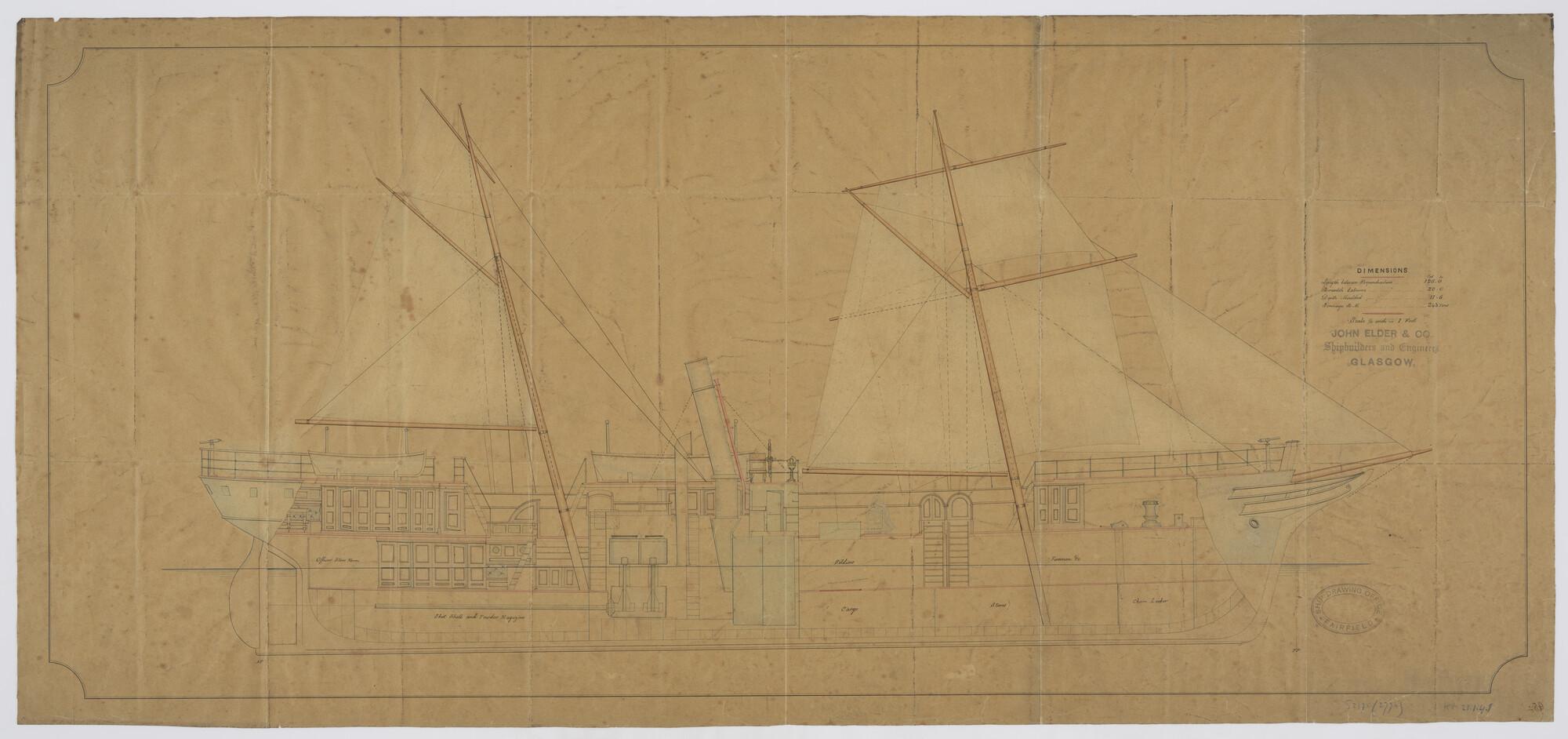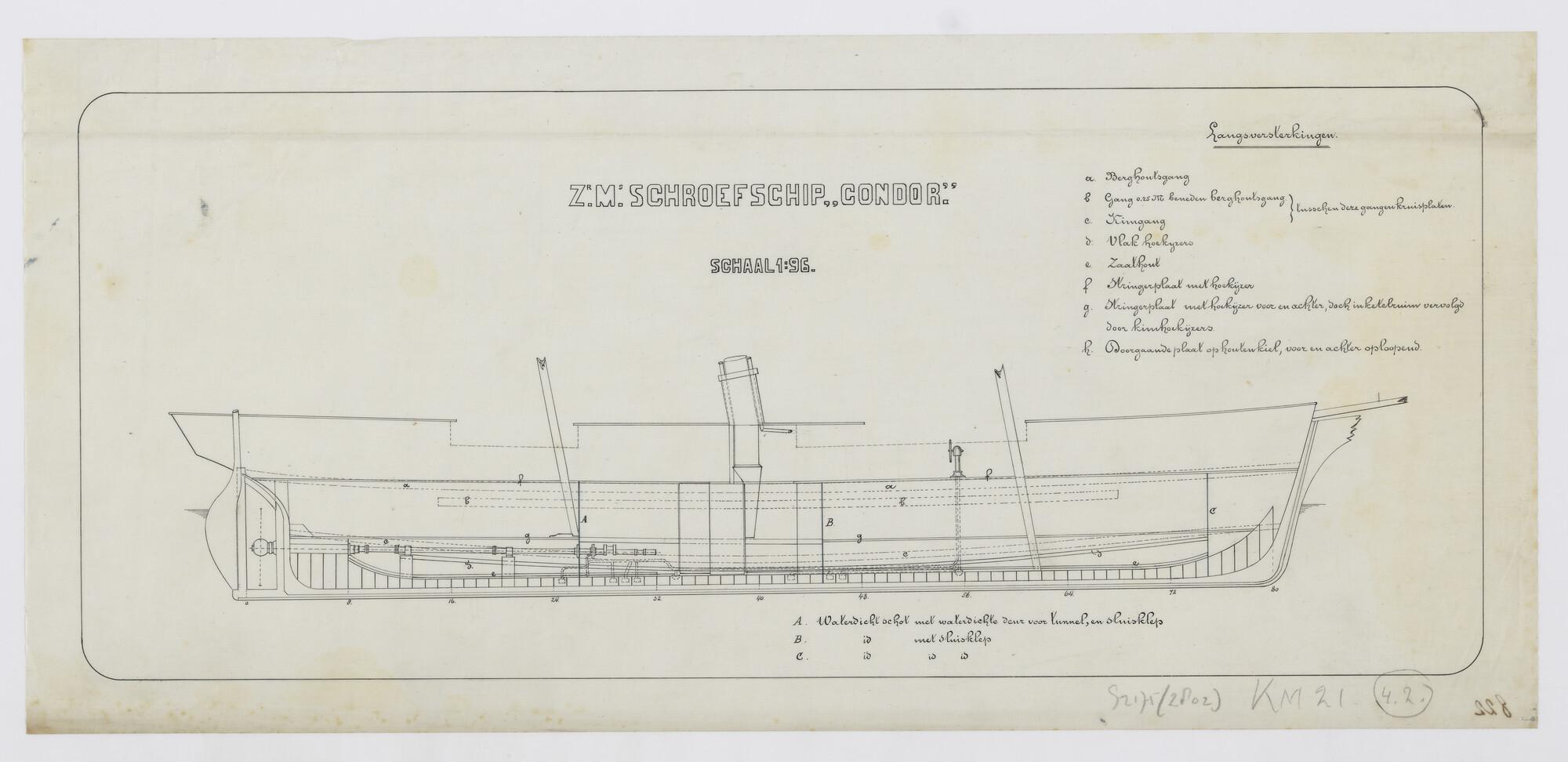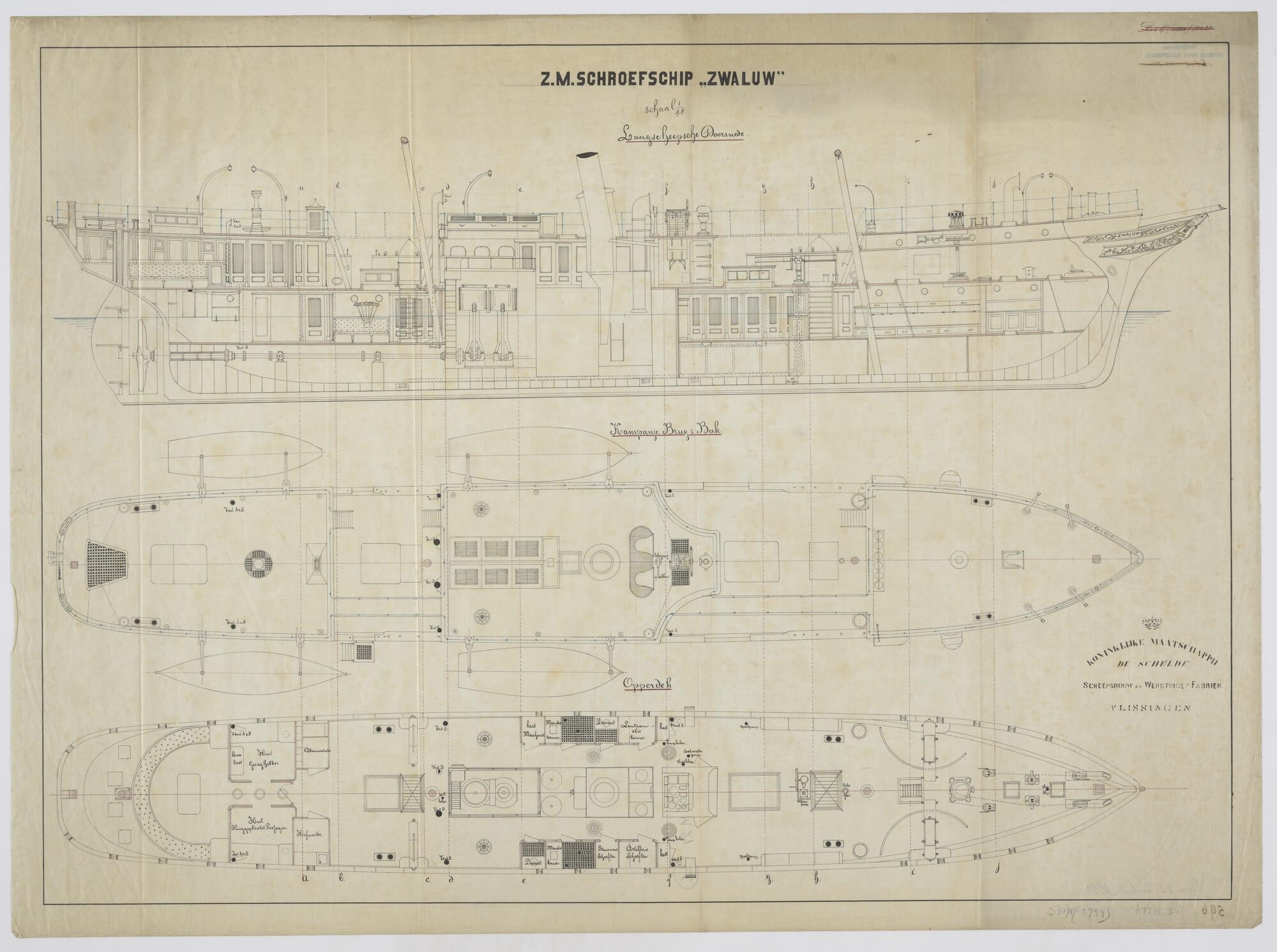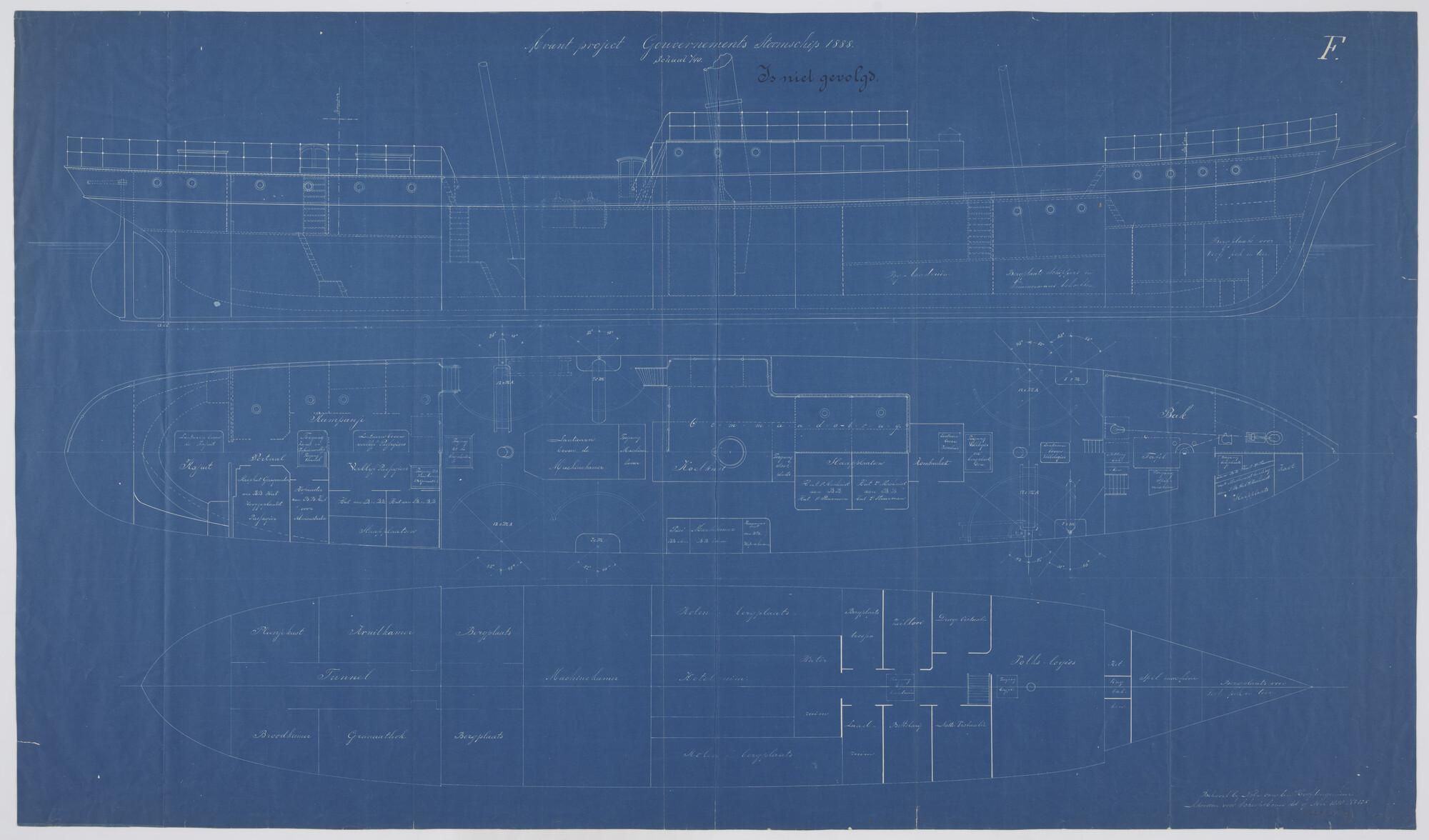 Zeilplan van het schroefstoomschip voor de Gouvernem...