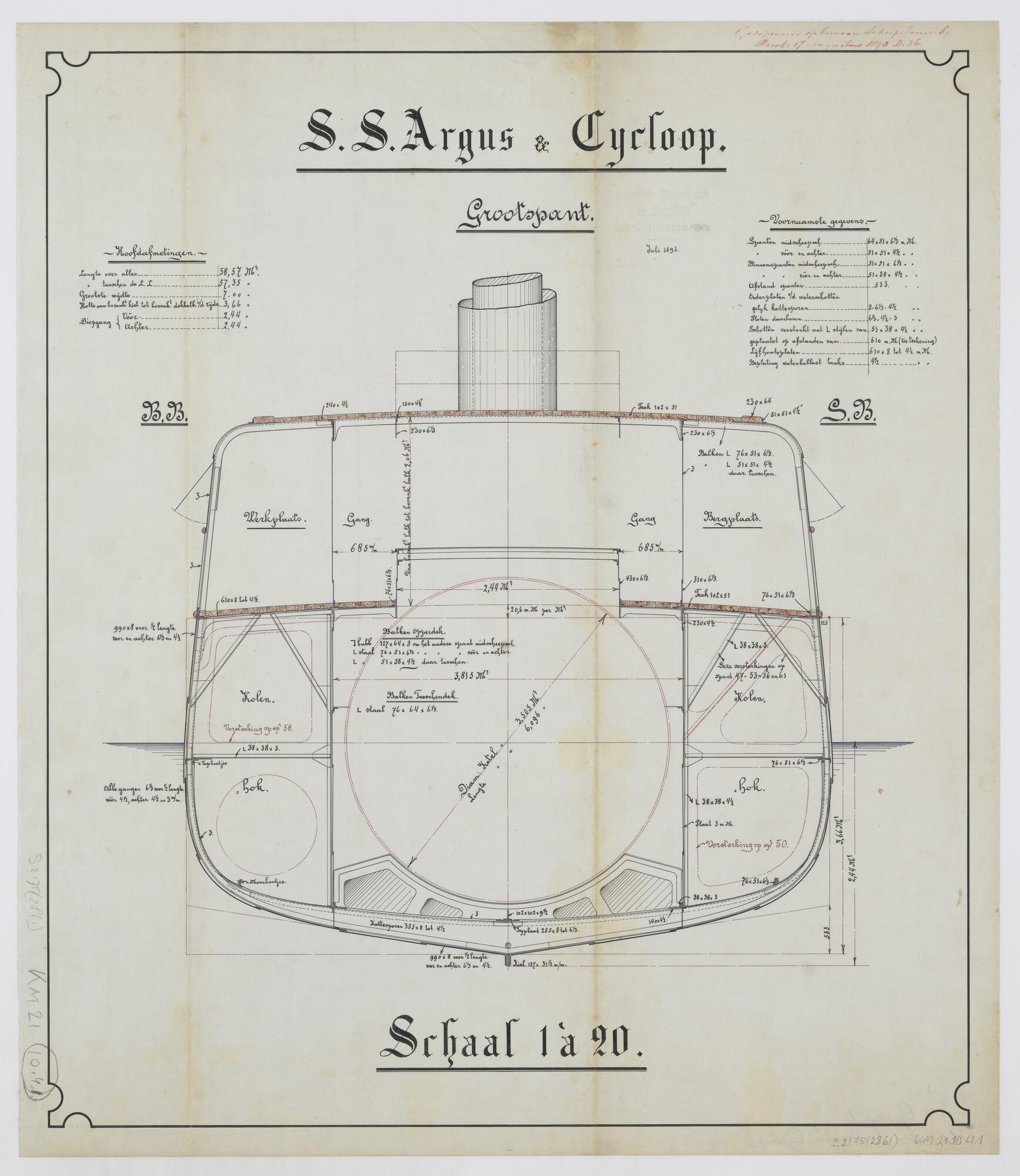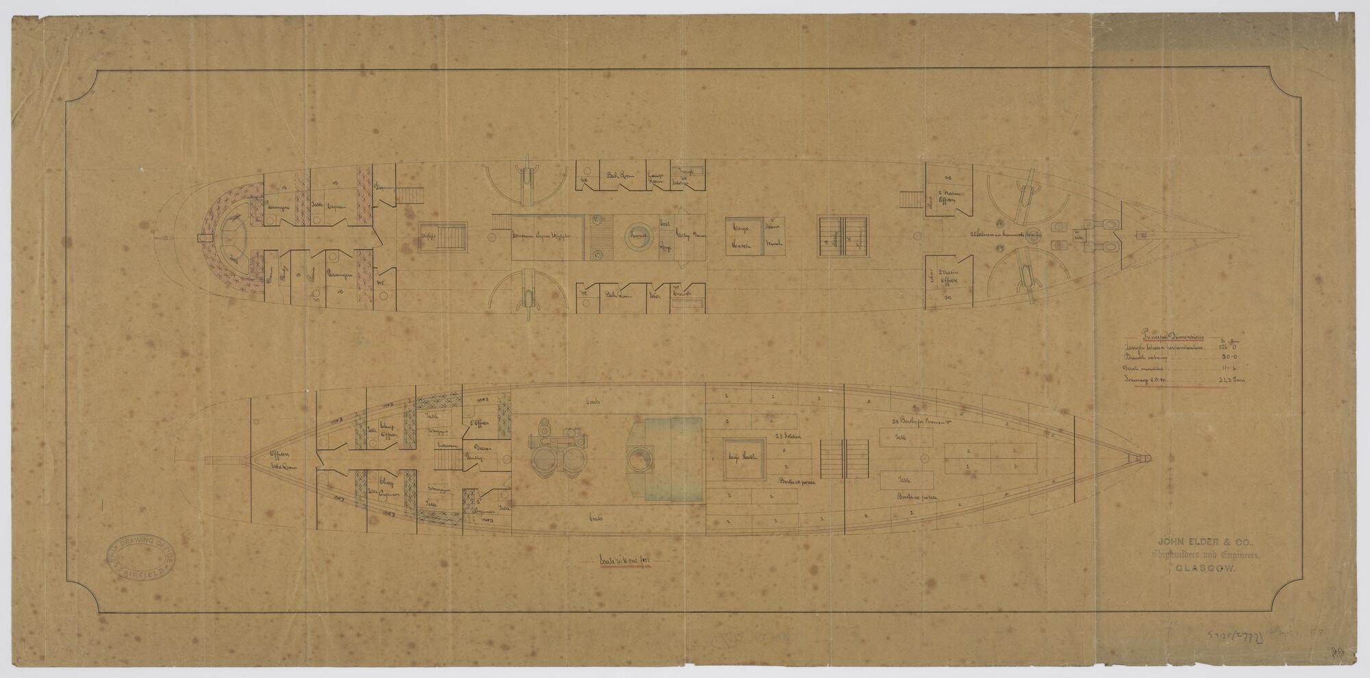 Dwarsdoorsnede over het bovendek van de stoomschepen...