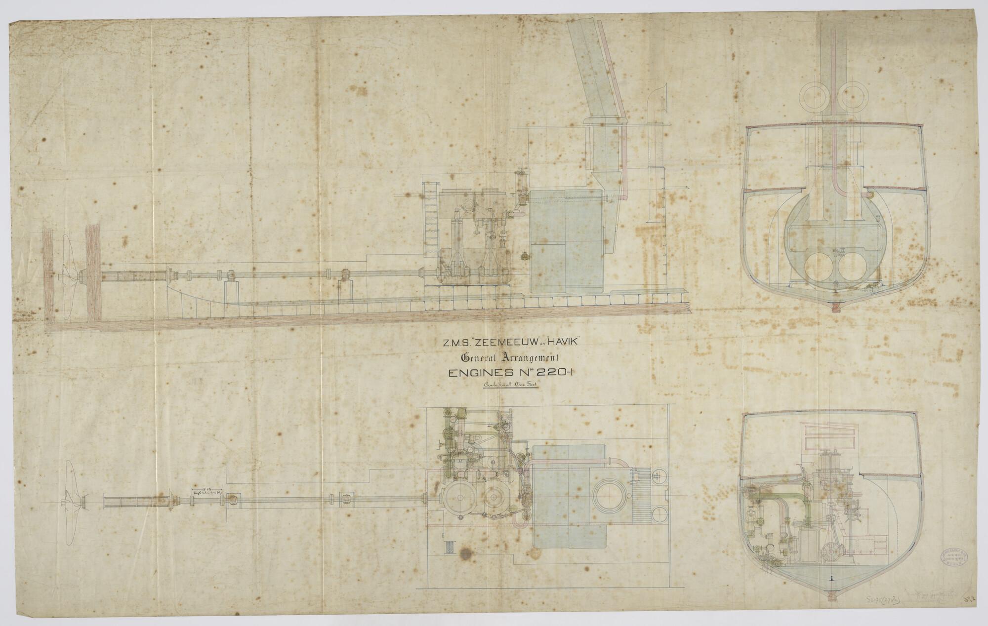 Indelingstekeningen van de kampanje, het brugdek, he...
