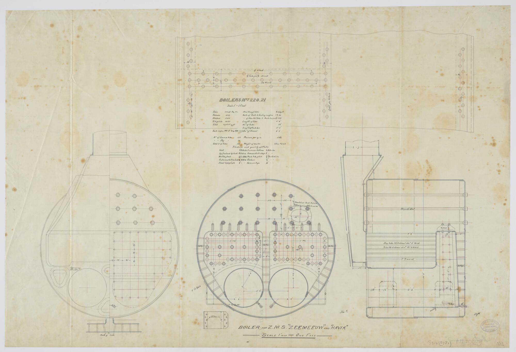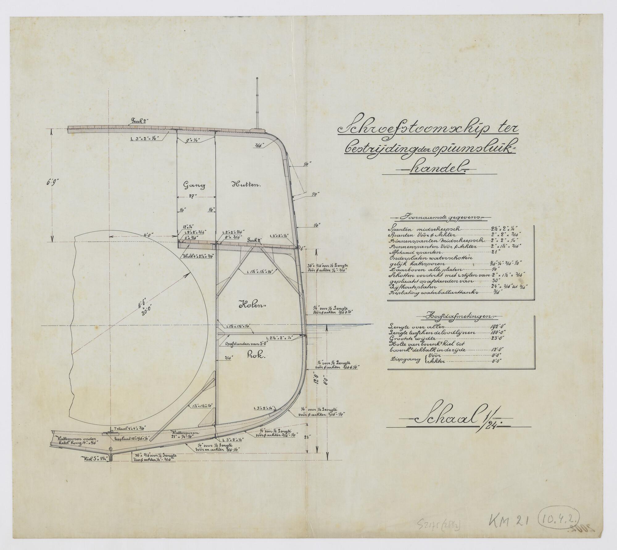 Lijnentekening en spantenraam van de stoomschepen vo...