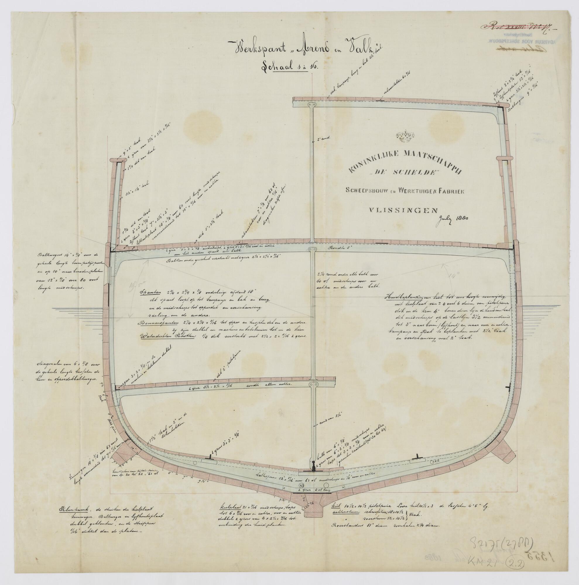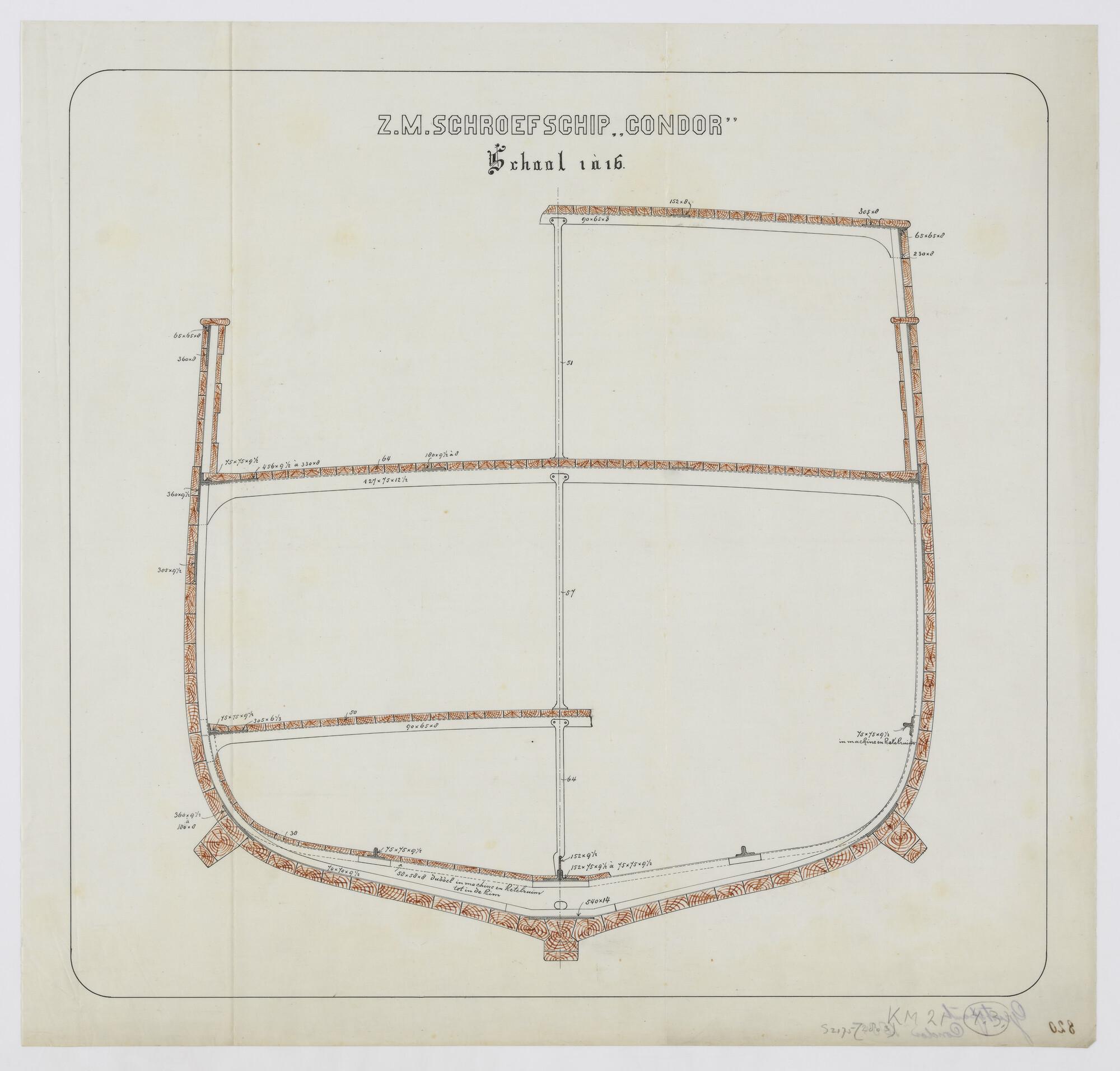 Langsscheepse doorsnede tot op de kiel, bovenaanzich...