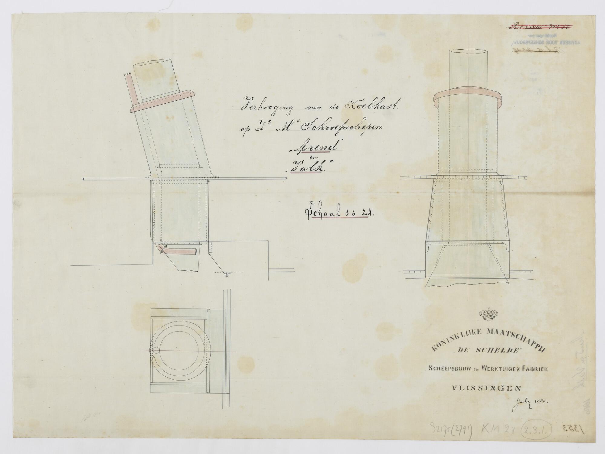 Zeilplan en tuigage van de stoomschepen voor de Gouv...