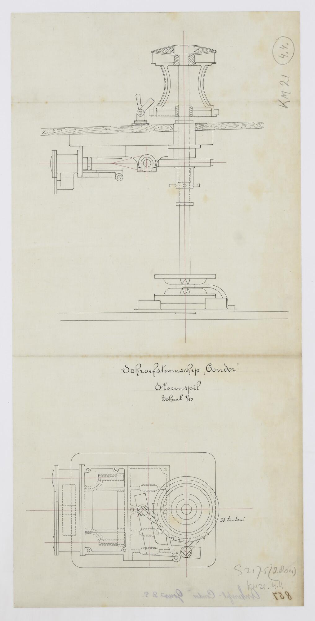 Dwarsdoorsnede over het grootspant van de stoomschep...
