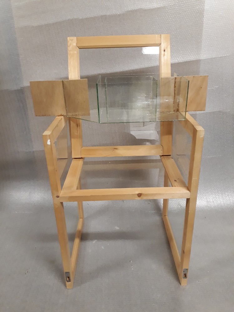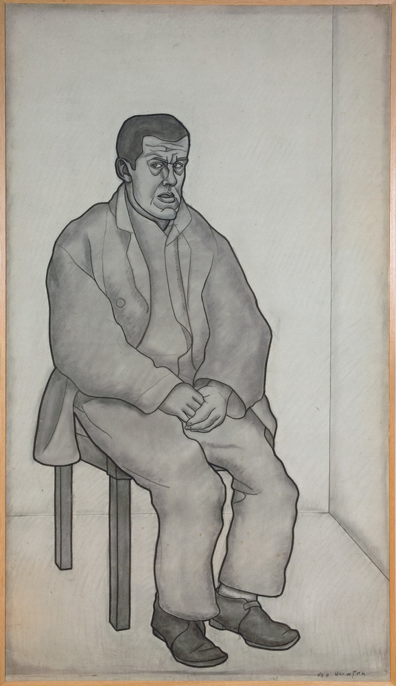 Man op stoel, naar links gedraaid