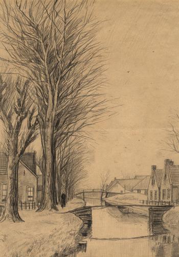 Tekening van de Noorderdwarsvaart bij de Hoge Brug t...